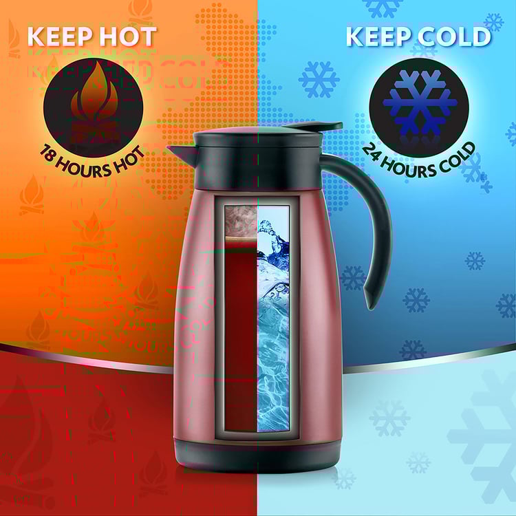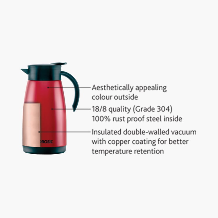This Borosil teapot has been manufactured with sturdy SS 304 material inner side and SS 201 Grade on the outer side. The material is 100% rust free which makes this carafe ideal for storing your beverages for longer periods of time. This teapot is vacuum insulated, which makes it suitable for holding both hot and cold beverages and retaining their temperature for a long time.