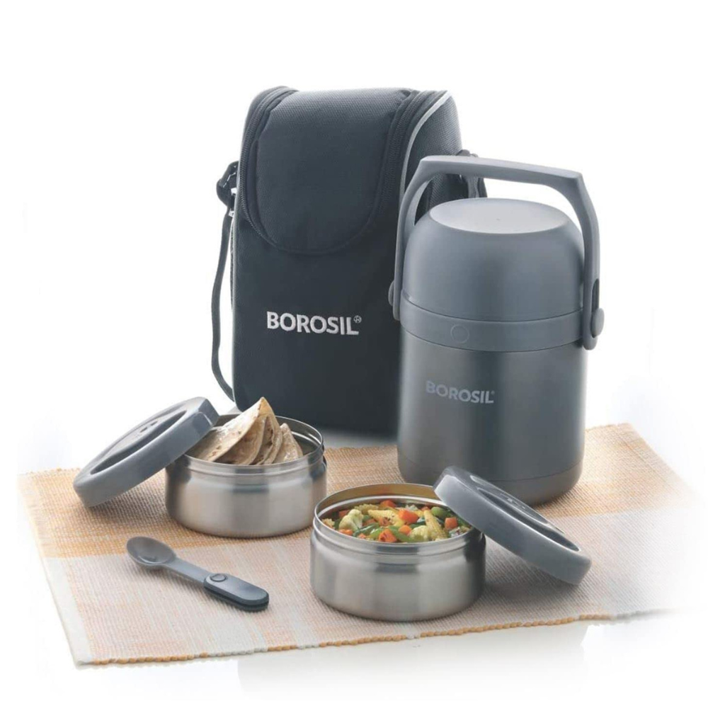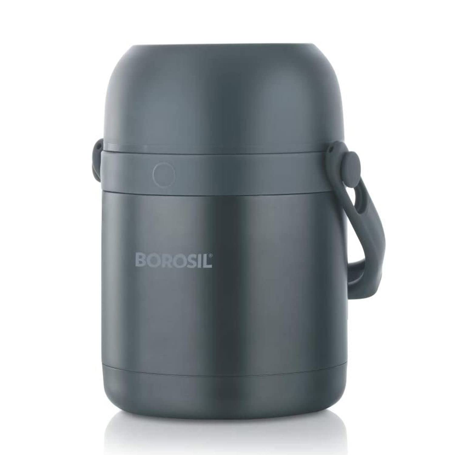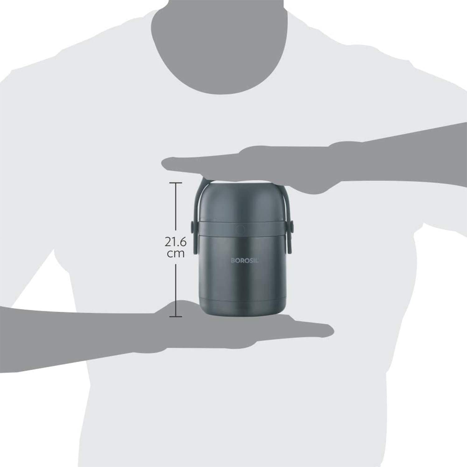 Borosil Hot N Fresh Stainless Steel Insulated Lunchbox | Keep Food Warm Upto 6 Hours | Air Vent Button | Tiffin for School, Office, College | Grey (Hot n Fresh, 1.3 L)