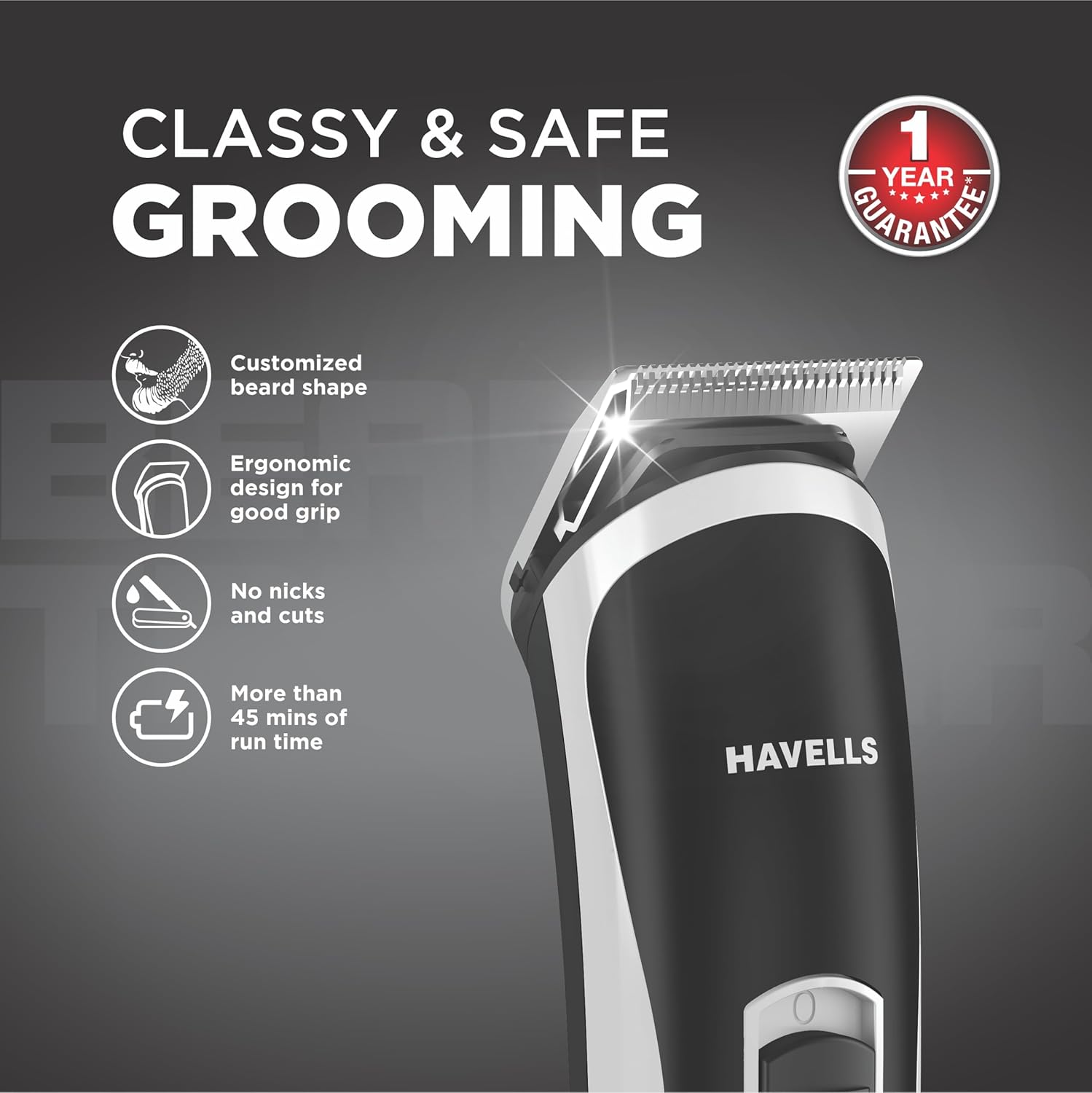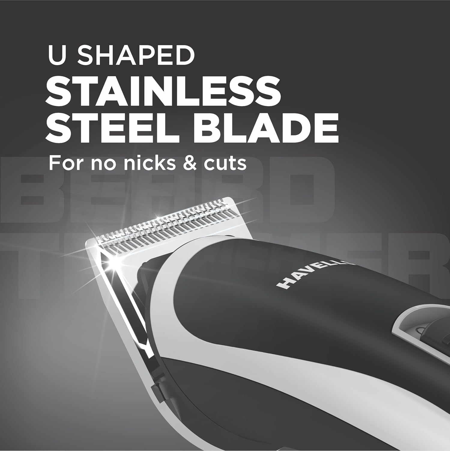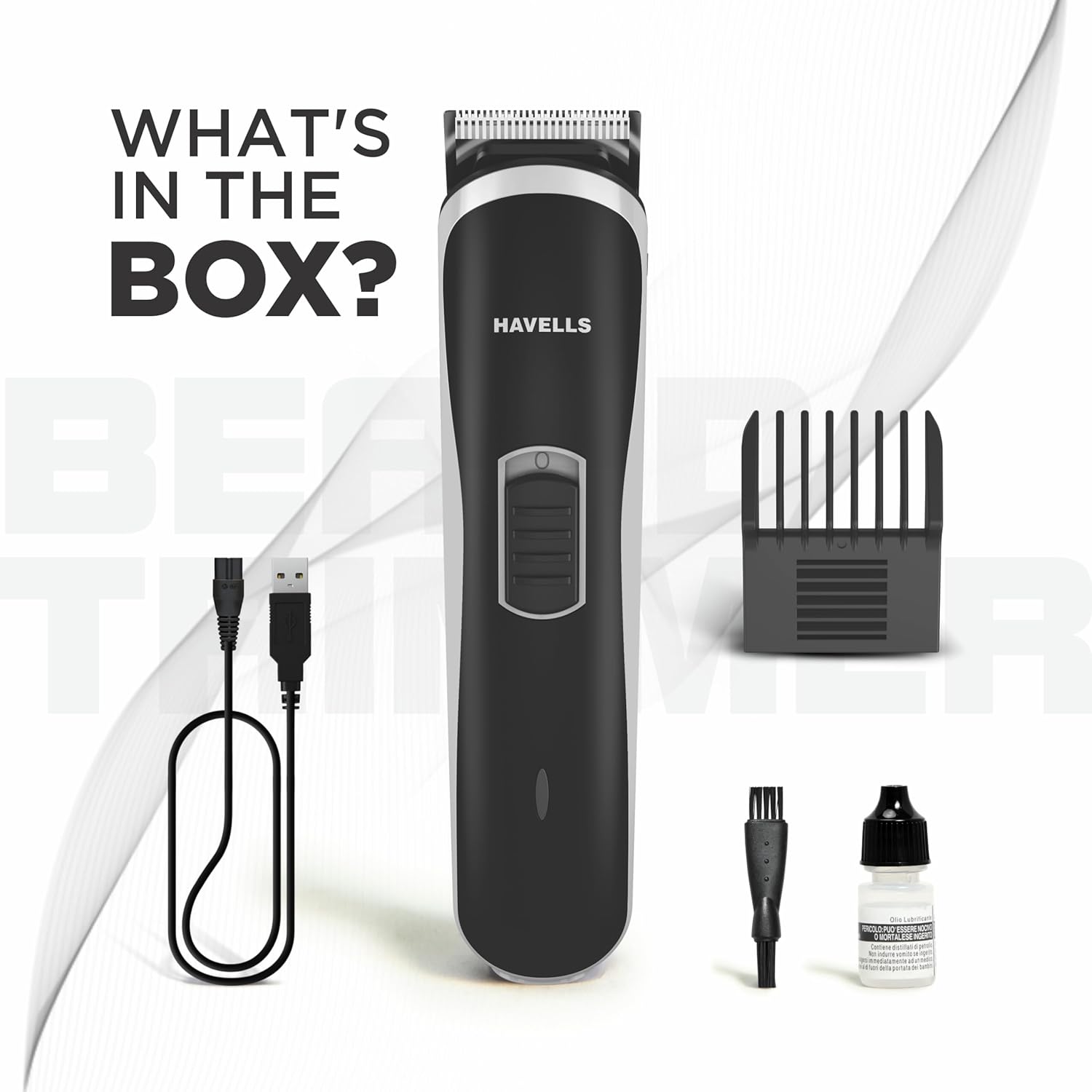 Havells BT2111 Rechargeable Beard Trimmer with SS Blades | Zero Trim with 0.5 Mm Precision | 45 Min Runtime,Battery Powered Black)-Men