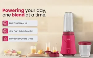 Preethi MiniBlend Compact Food and Juice Blender for Lump Free Purees, Smoothies and Protein Shakes | Razor sharp Ninja blades with 2 Leak-proof Jars, Sipper & Storage Lids | Free Lifelong Service