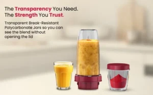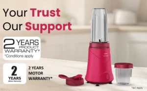Preethi MiniBlend Compact Food and Juice Blender for Lump Free Purees, Smoothies and Protein Shakes | Razor sharp Ninja blades with 2 Leak-proof Jars, Sipper & Storage Lids | Free Lifelong Service