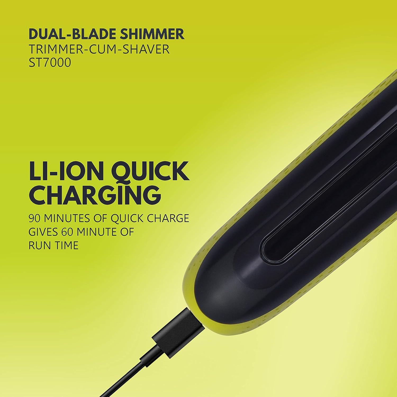 - Li-ion quick charge in 90 minutes gives 60 minutes of run time. Get a close shave upto 0.1 mm