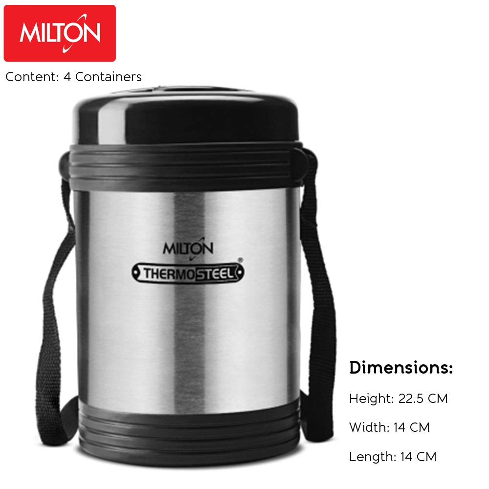 MILTON Legend 4 Thermosteel Tiffin Box, (4 Containers) 260 ml Each, Silver,Alloy Steel