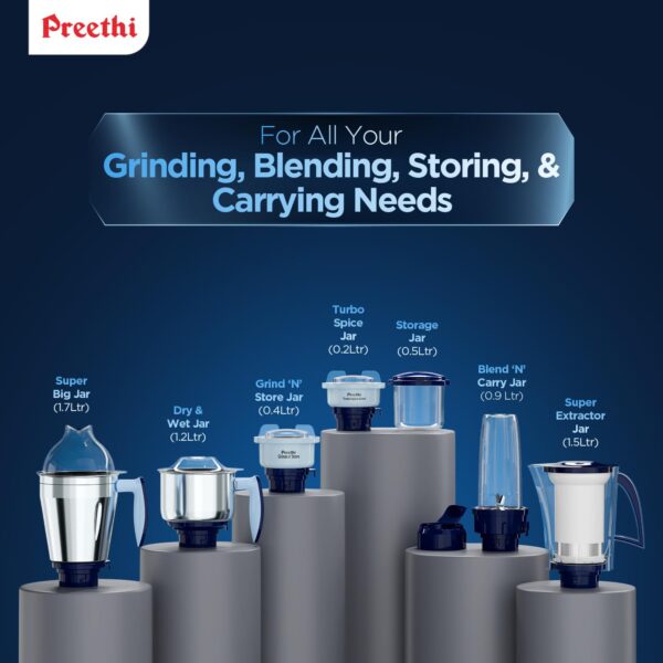 Preethi Blueleaf Titanium 15.0 | Mixer grinder | 1000 Watt Mixie with 15 advanced features| 7 Jars
