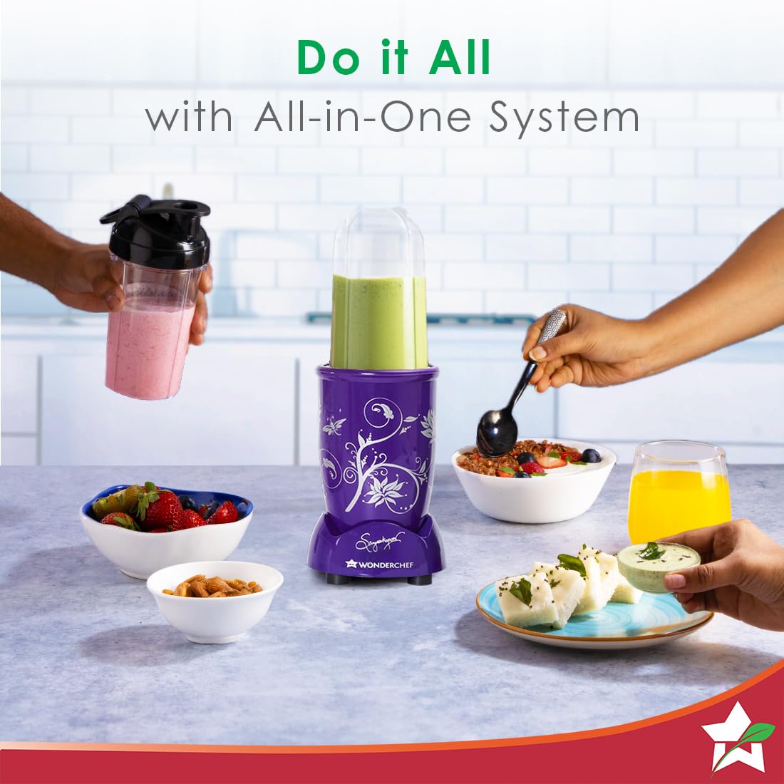 Wonderchef Nutri-blend Mixer Grinder Blender, Smoothie Maker, 2 Unbreakable Jars (Blending, Grinding, and Sipper Jar), 500W 22000 RPM 100% Full Copper Motor, SS Blades, 2 Year Warranty, Purple