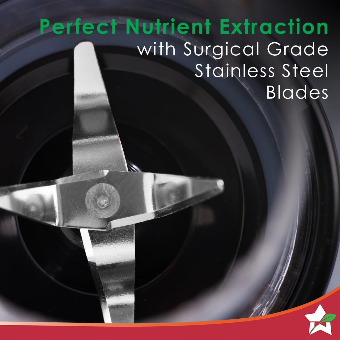 - Surgical – grade Stainless Steel Blades: Extract every ounce of immunity enhancing antioxidants, pain-relieving Omega 3s, proteins, vitamins & minerals from your foods with the super sharp blades rotating at high speed.