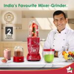 Wonderchef Nutri-blend 500W Mixer Grinder, 22000 RPM Motor, Smoothie Maker, Masala Grinder, Chutney Blender, 3 Unbreakable Jars, Recipe Book by Chef Sanjeev Kapoor, 2 Yr Warranty, Red