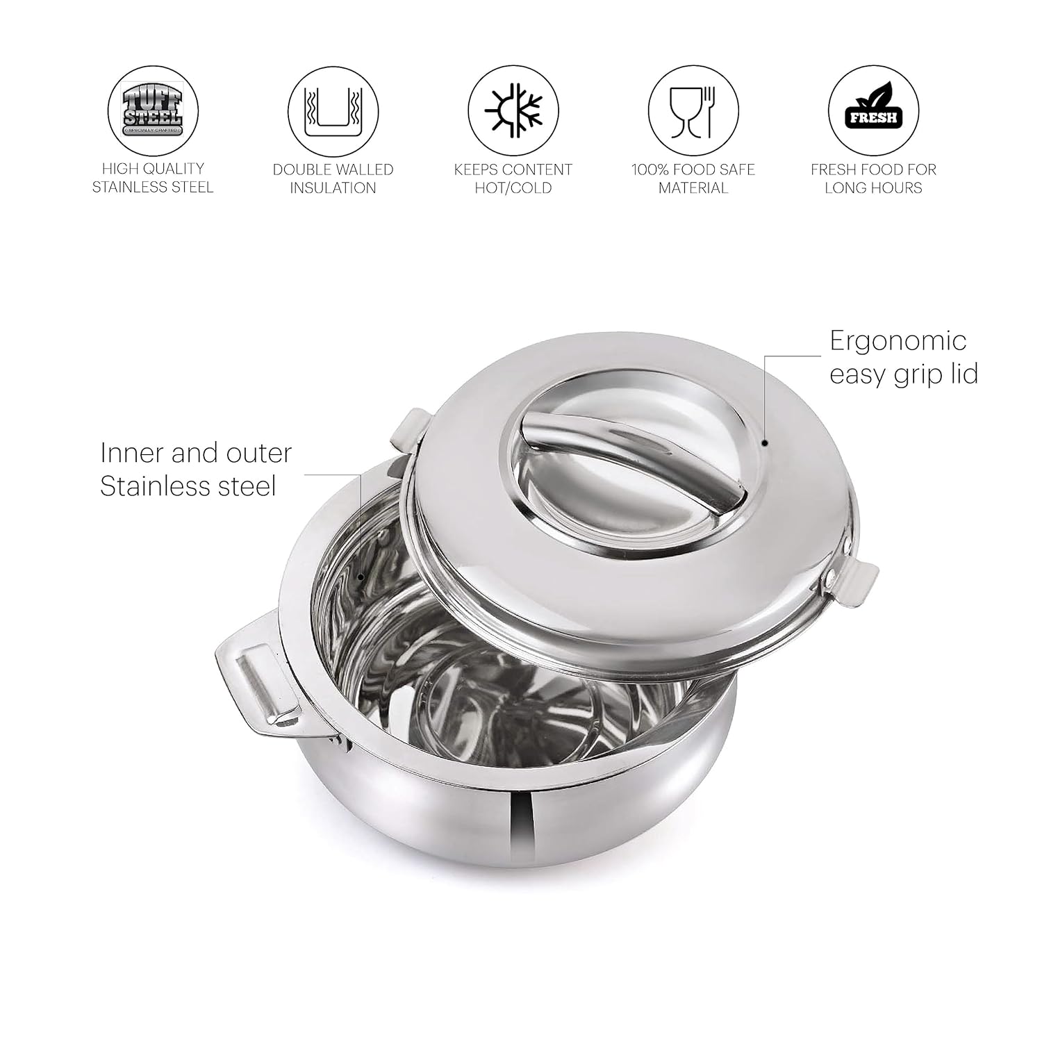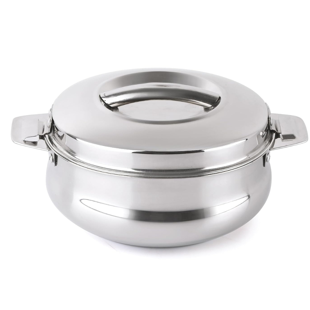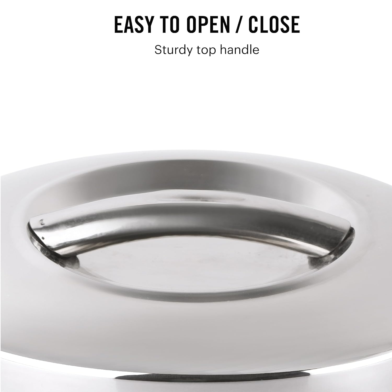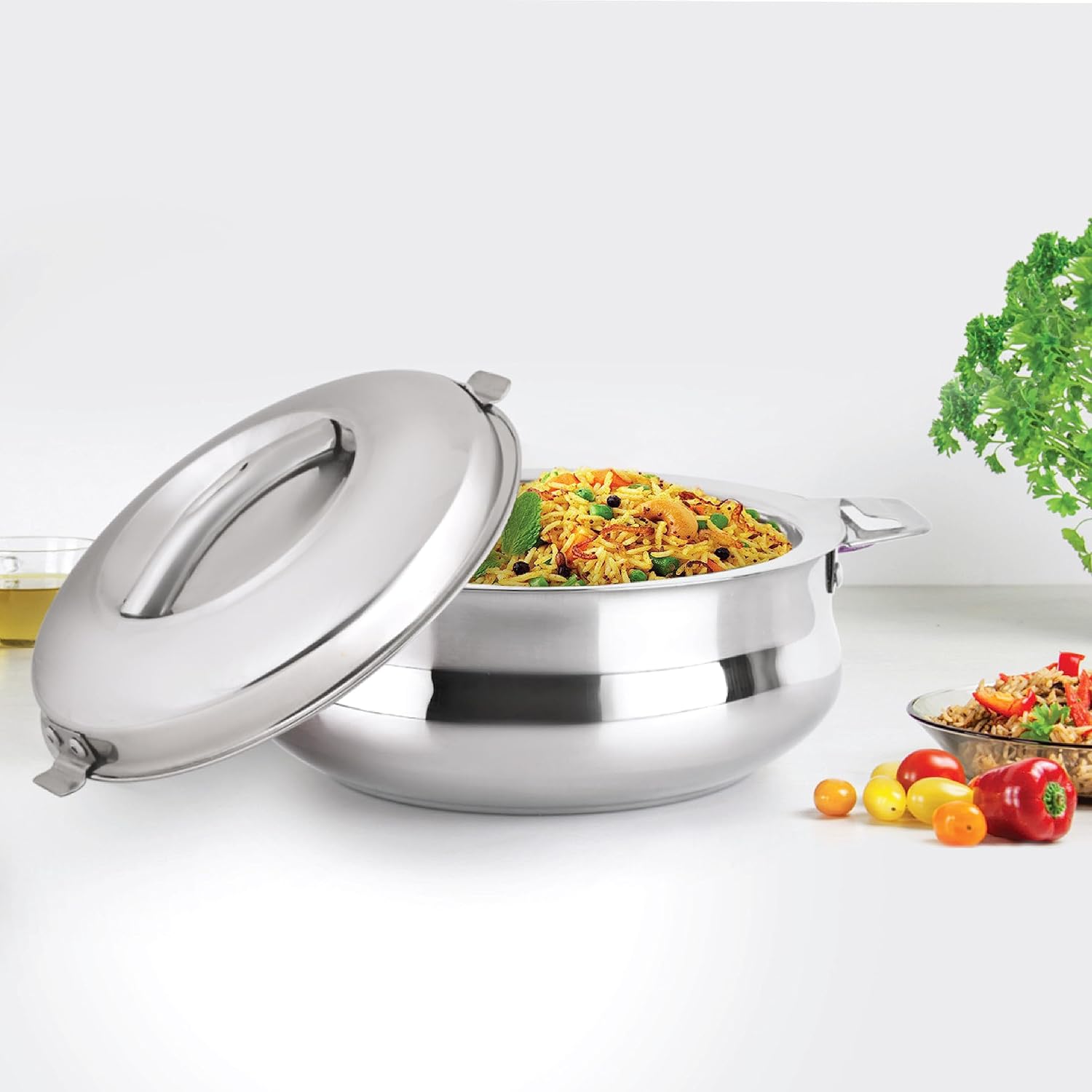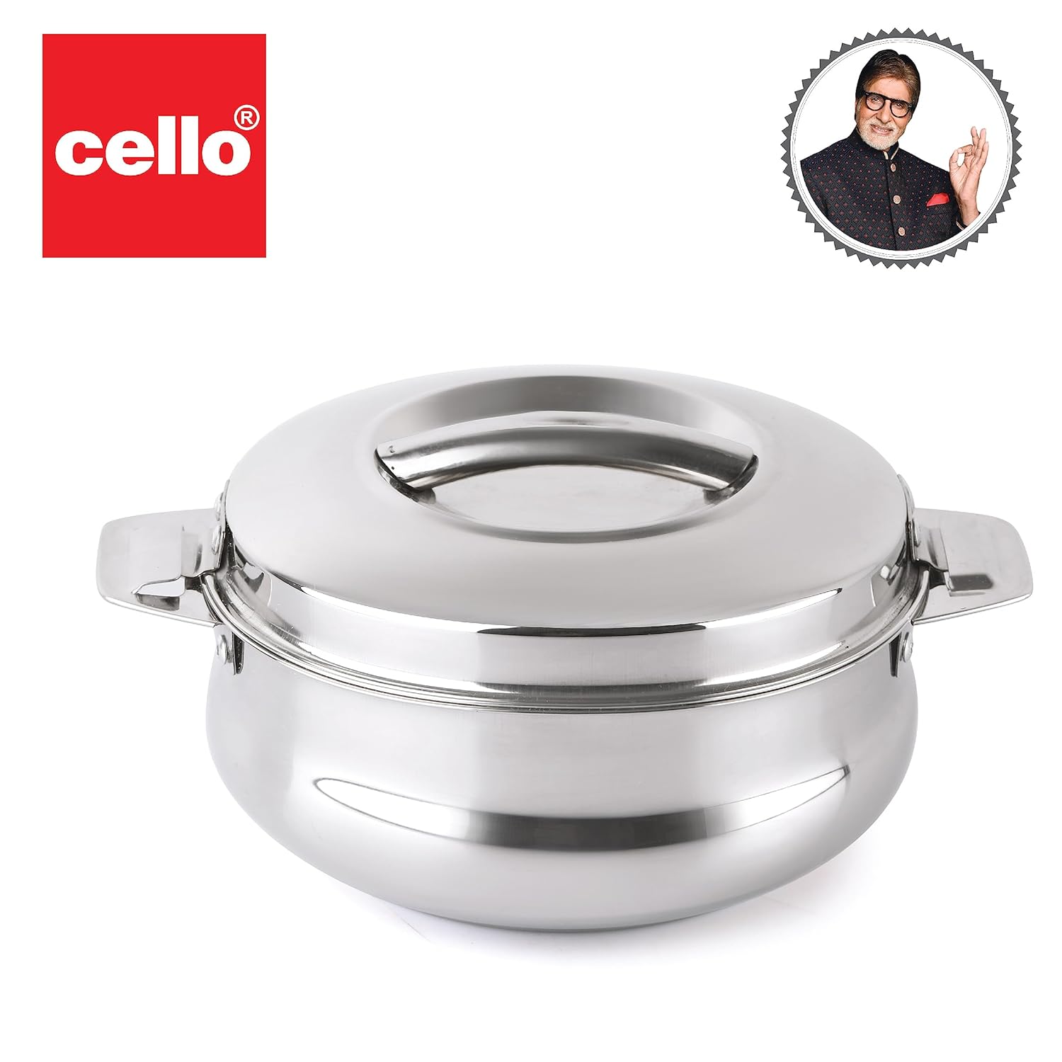 Cello Bella Double Walled Insulated Stainless Steel Casserole 5000ml, Silver | Food Grade, PU Insulated Easy Grip Handle | Keeps Roti, Soups, Rice Hot For Long Hours | Ideal For Kitchen & Gifting