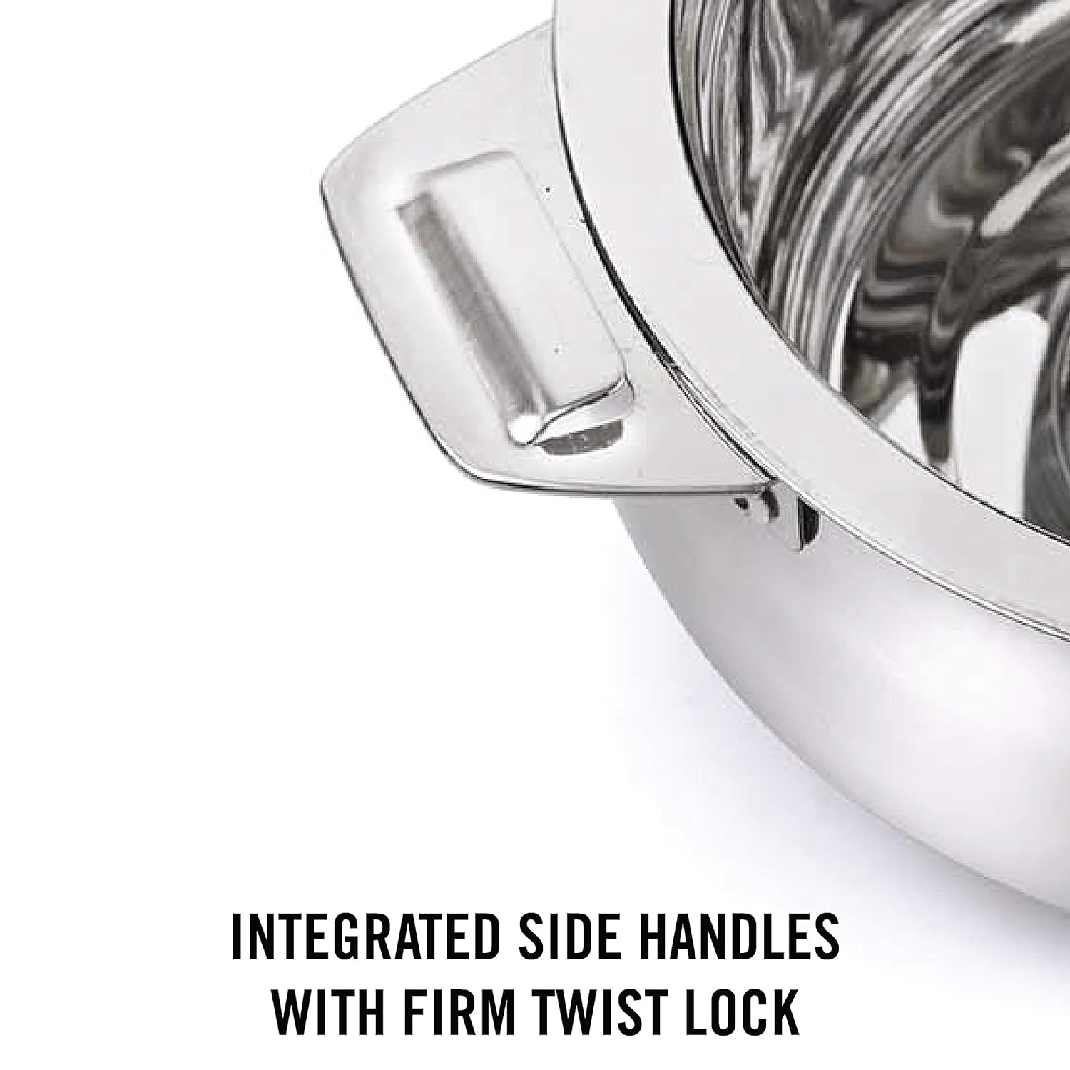 Hawkins 3L Pro Triply Stainless Steel Handi with Steel Handles and Steel Lid, Silver (PSH30S)