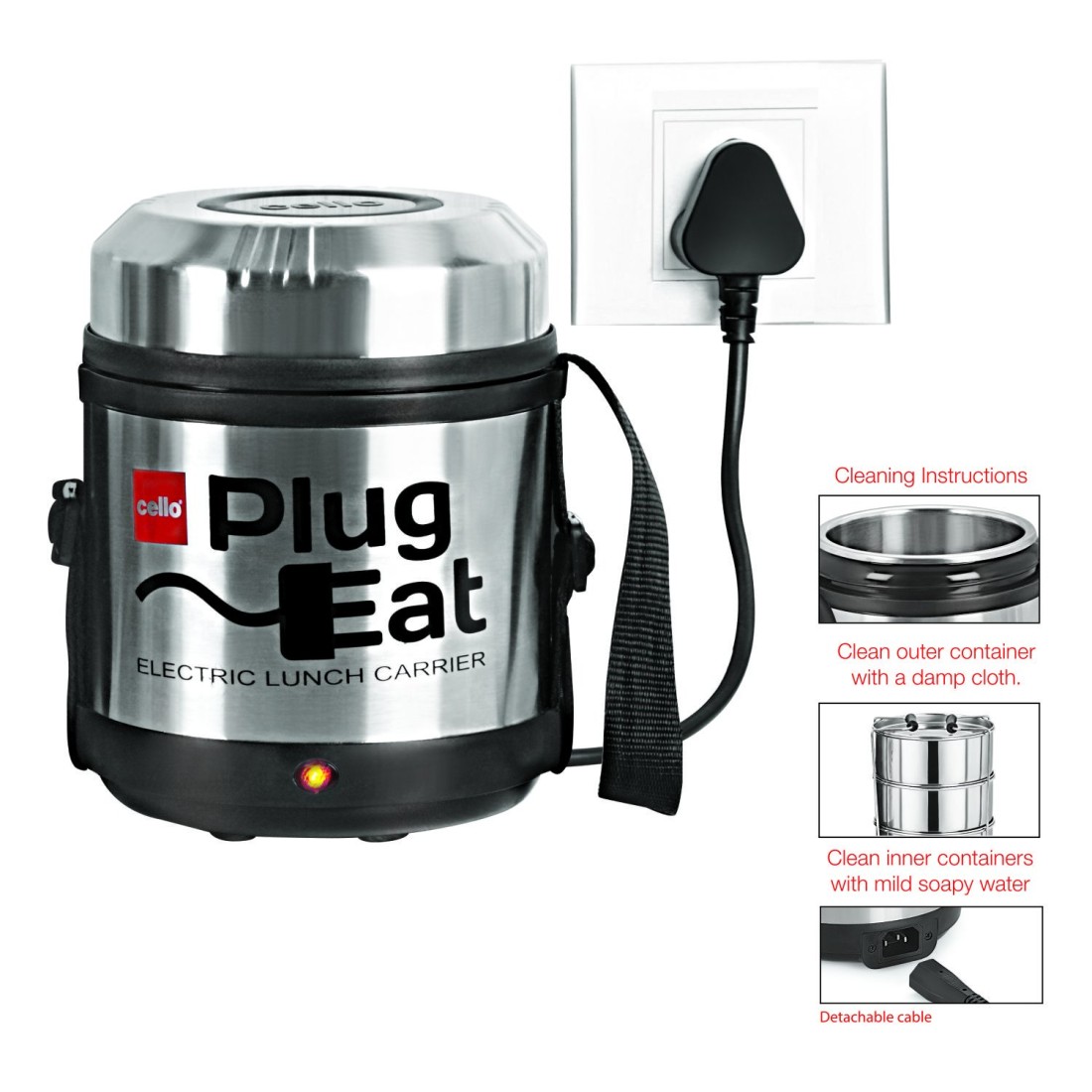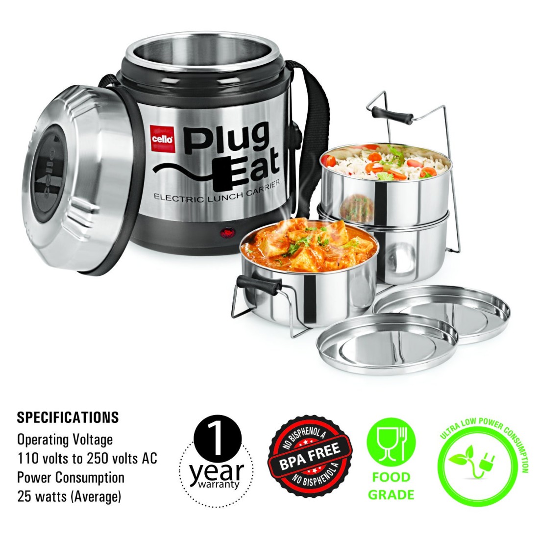CELLO Electro Electric Stainless Steel Lunch Box, 3 Containers