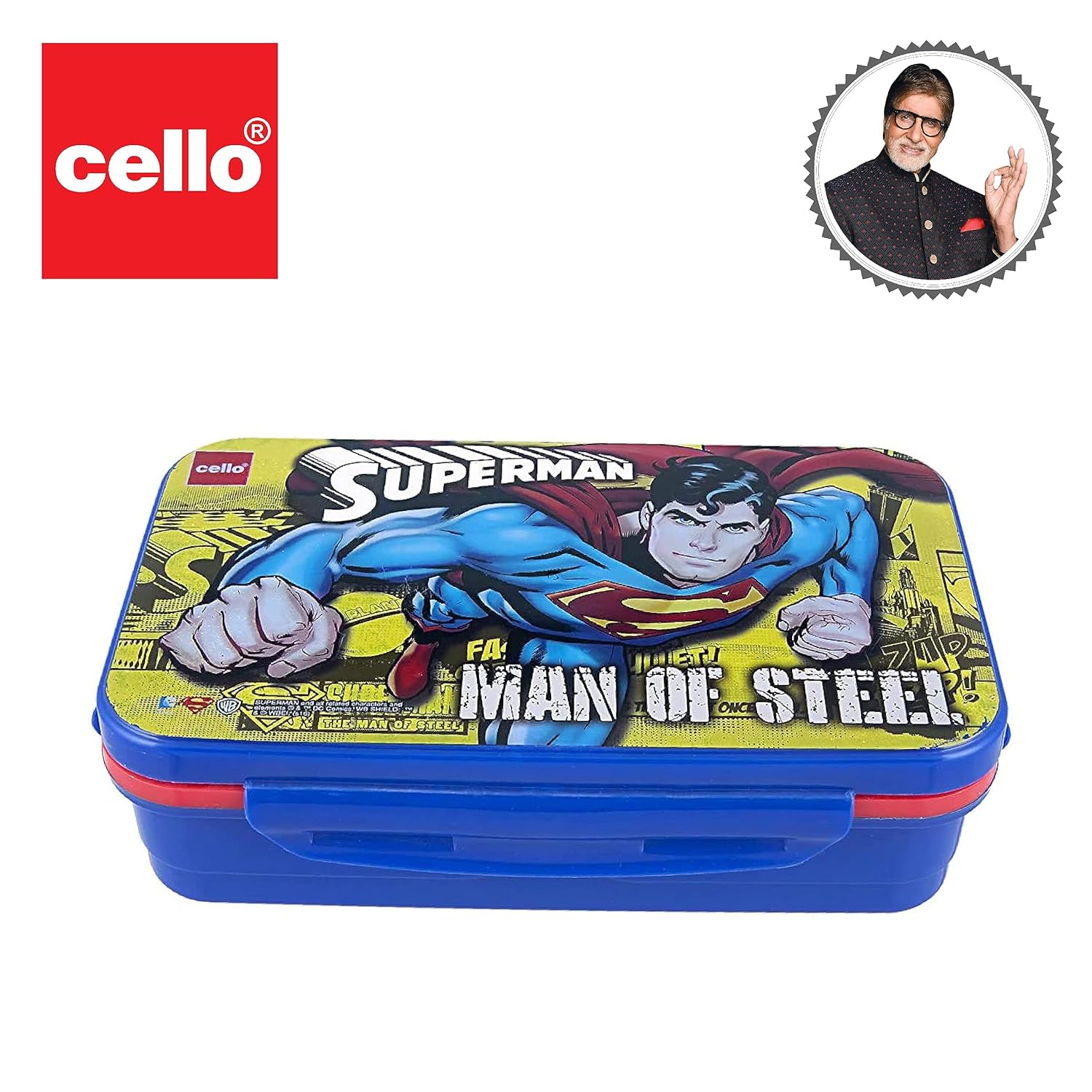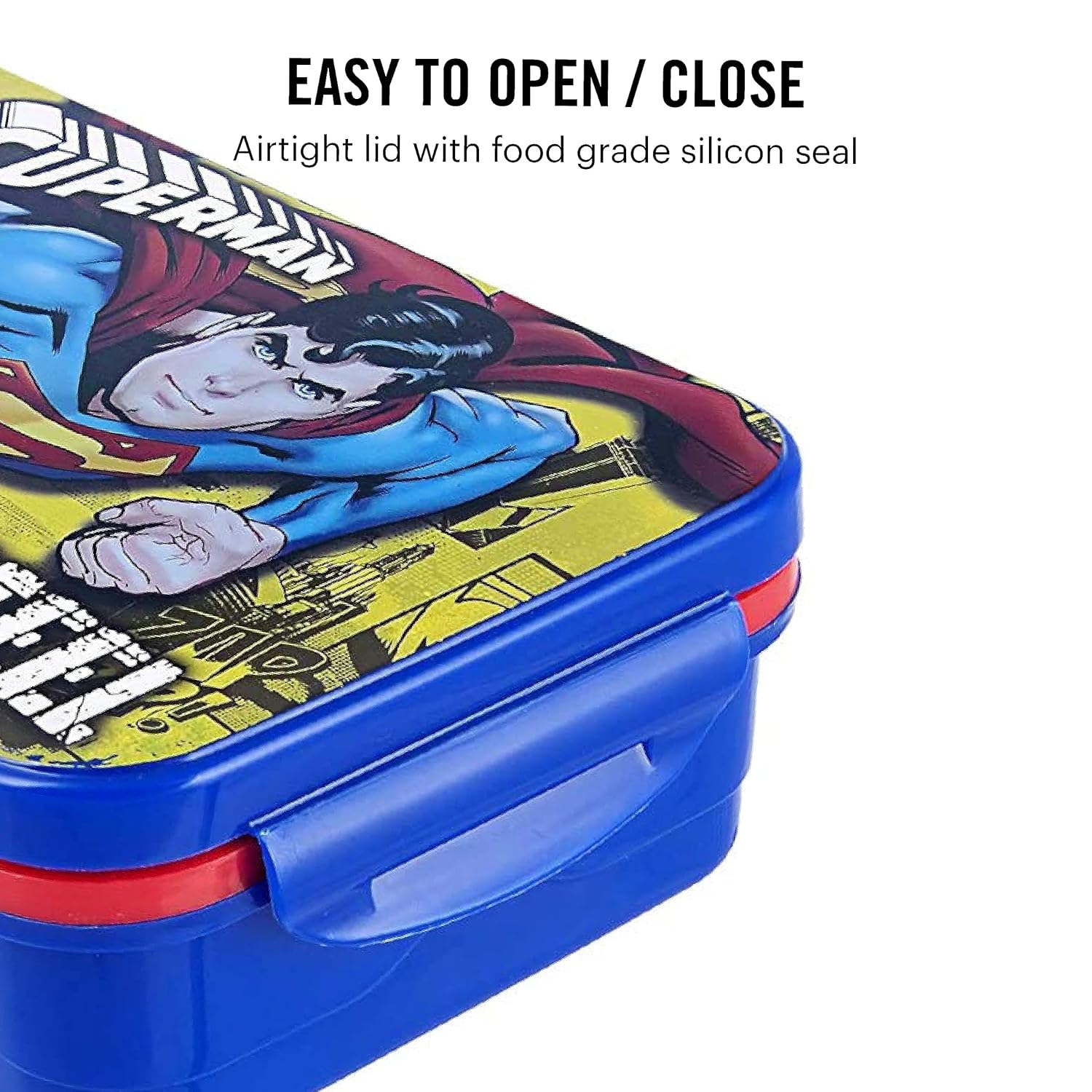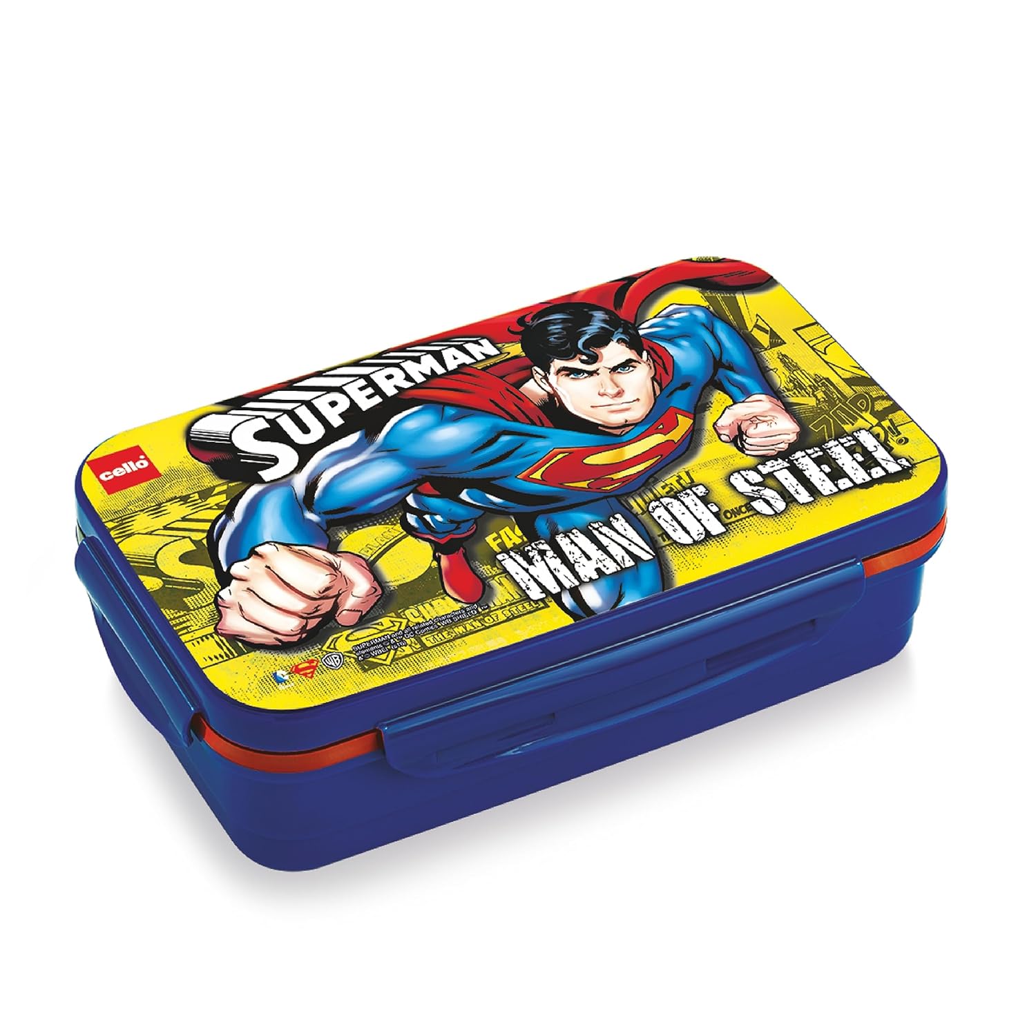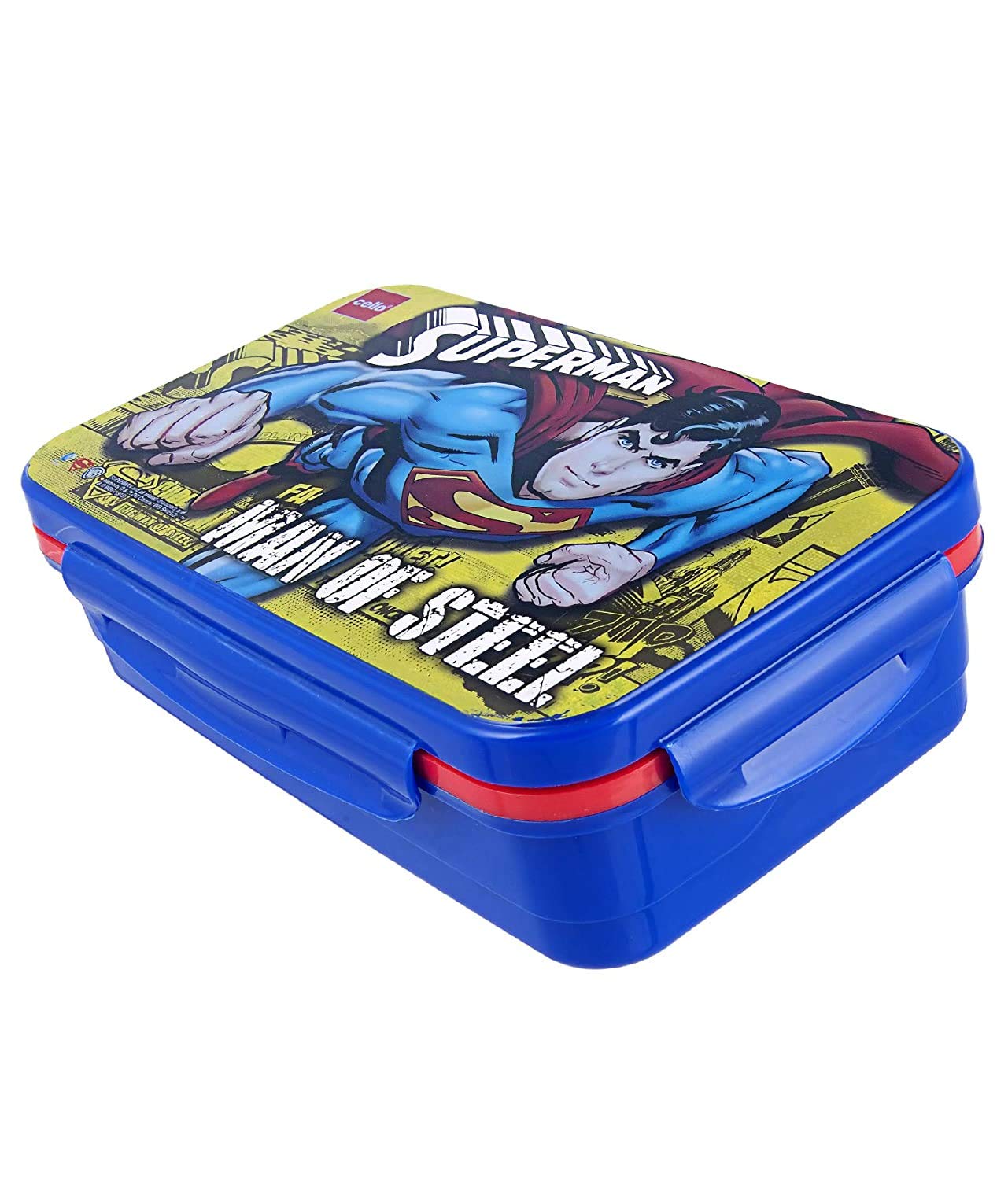 CELLO HI-Lunch Big Deluxe Insulated Lunch Box with Inner Steel and Stainless Steel Veg Box, Attractive Superman Print, Blue