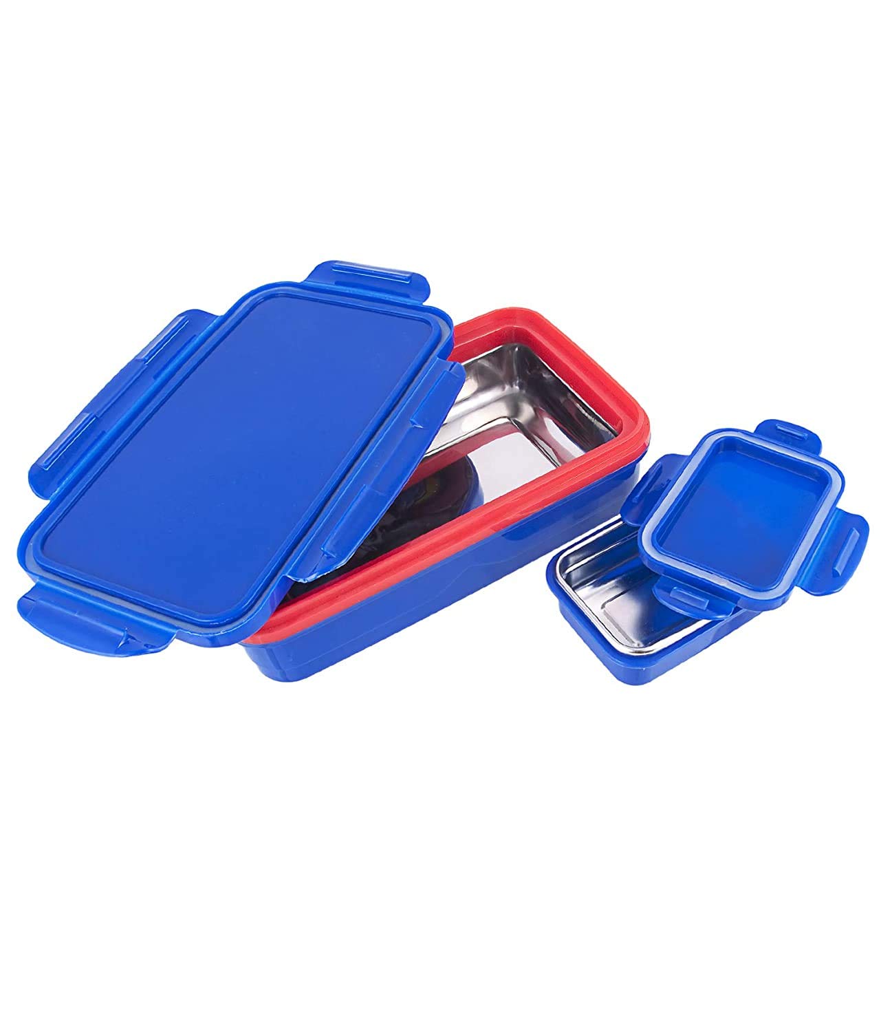 CELLO Wow Insulated Lunch Box | 4 Stainless Steel Containers, Blue | Outer Plastic Inner Steel Container | Leak Proof | Food Grade | Easy to Carry | Tiffin Box for Office, Picnic, Travelling