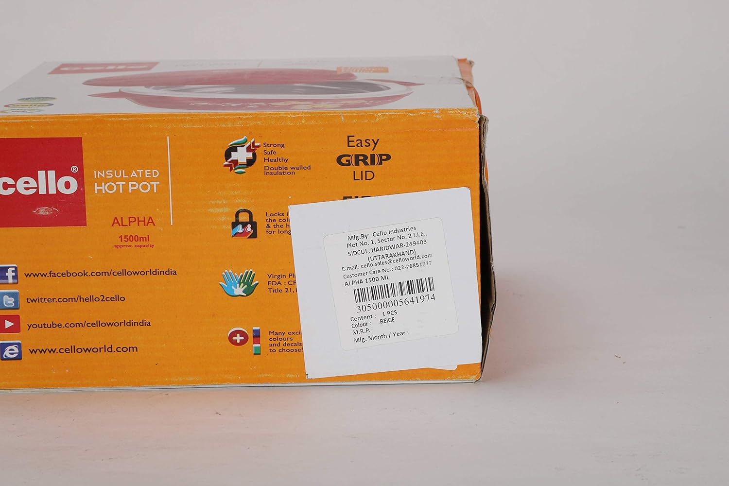 Cello Plastics Alpha Insulated Hot Pot, 1500ml, Beige, 1 Piece