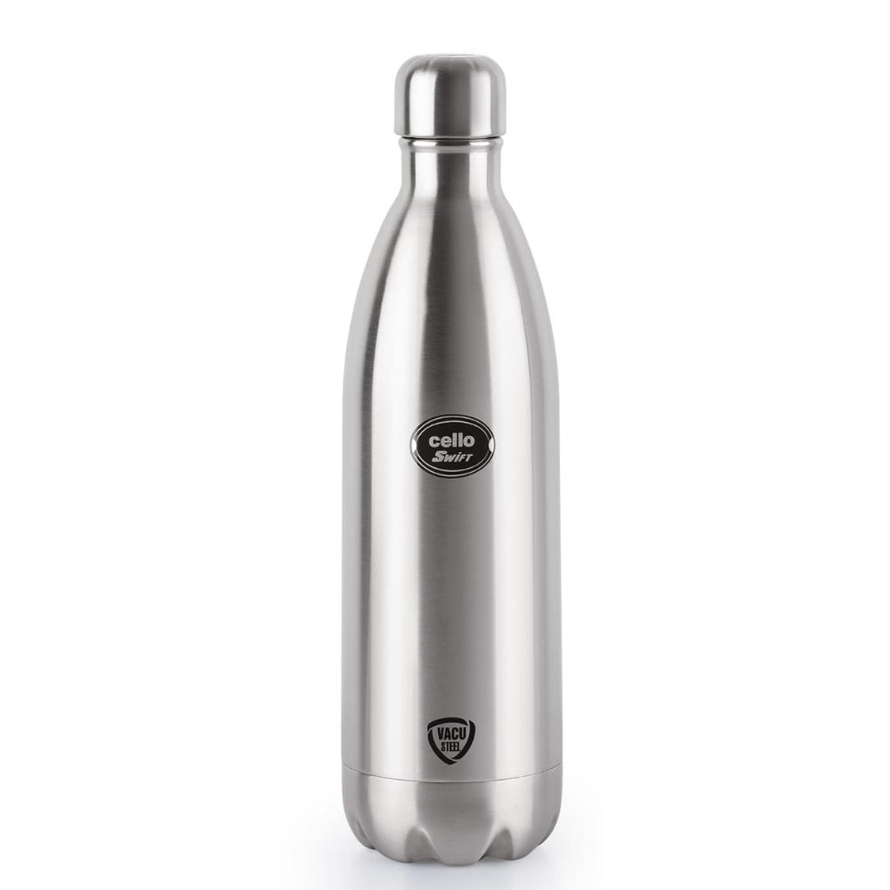 Cello Swift Thermosteel Water Bottle 1000ml, Silver | Double Walled Vacuum Insulated Flask Bottle | Keeps Drinks Hot or Cold for 24 Hours |Easy To Carry | Ideal For Water, Tea, Coffee & Cold Beverages