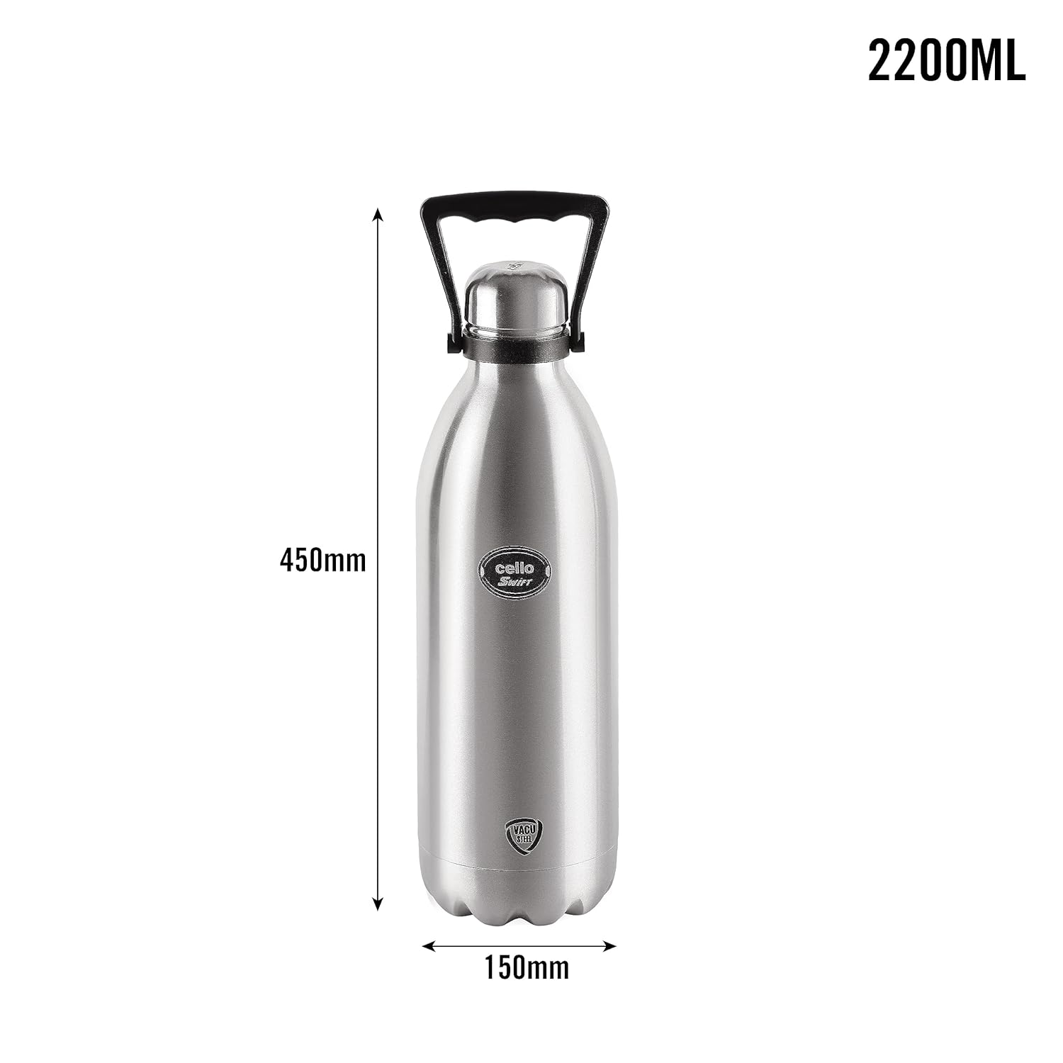 Cello Swift Thermosteel Water Bottle 2200ml, Silver | Double Walled Vacuum Insulated Bottle | Stainless Steel Flask | Keeps Drinks Hot or Cold for 24 Hours | Ideal for Home, Office, Gym & Travel