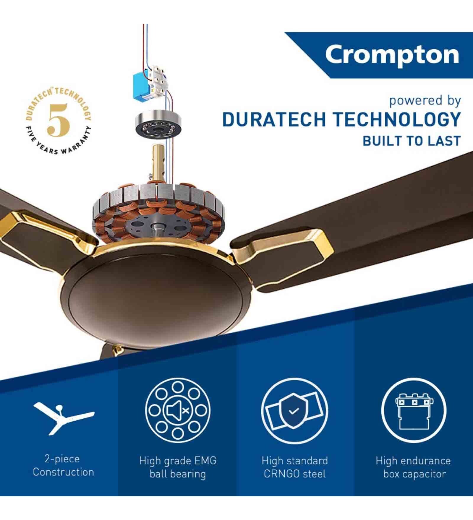 Crompton Avancer Prime 1200 mm (48 inch) Decorative Ceiling Fan with Anti Dust Technology (Bakers Brown)