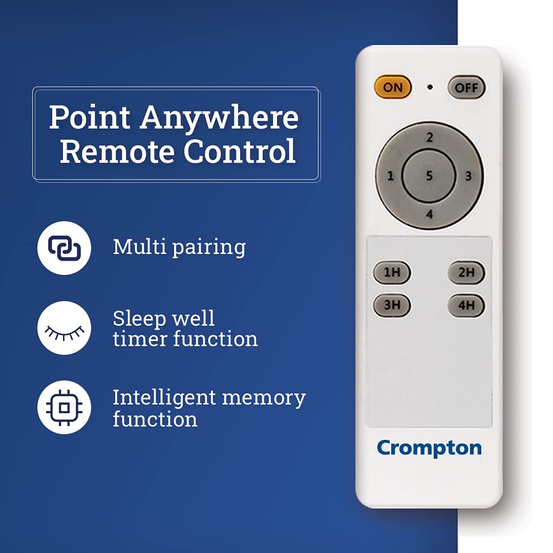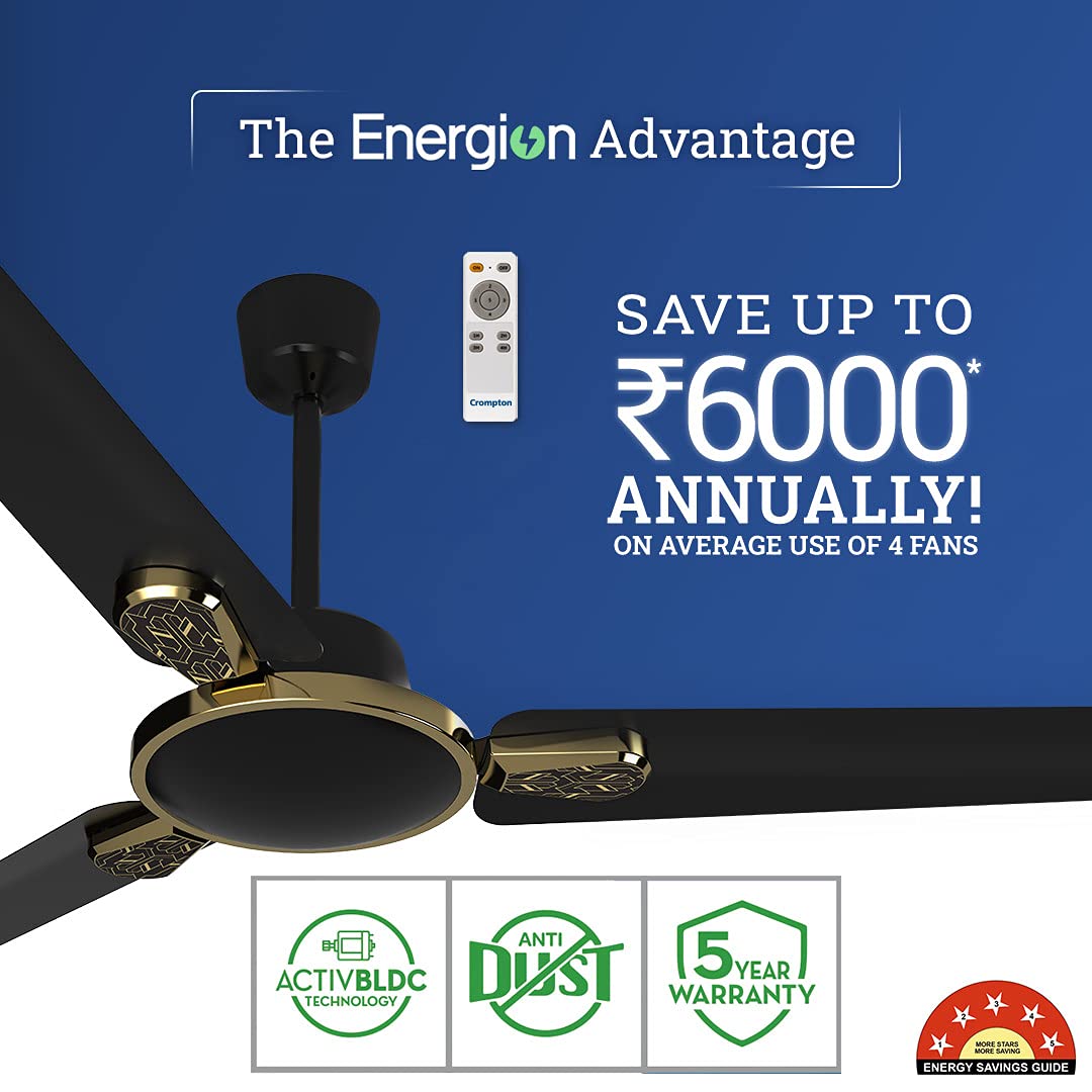 - PRODUCT: Crompton’s most energy efficient 5-Star rated remote-controlled fan with ActivBLDC technology;Upgrade your living space with the premium design of Energion Stylus, and attract 50% less dust with Crompton Anti-Dust technology. Easy to clean in a single swipe!