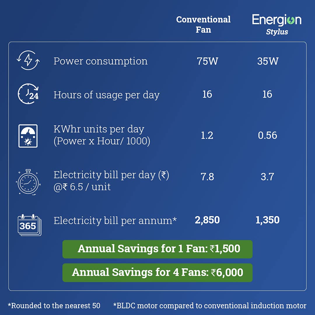 - WARRANTY: 5 years on-site warranty provided by Crompton from date of purchase;LOW ENERGY CONSUMPTION:Offers 50% energy savings as compared to conventional fan