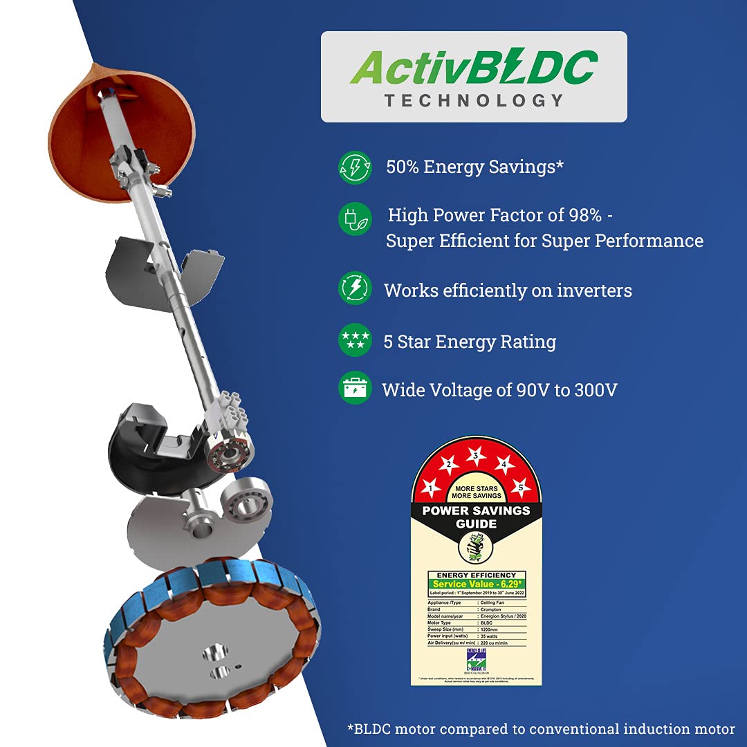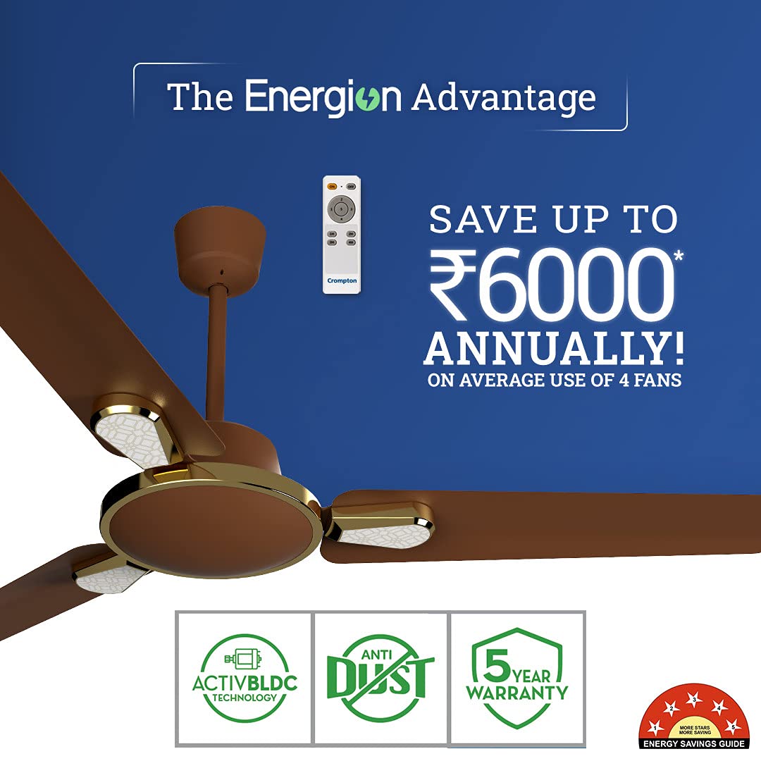 Crompton Energion Stylus 1200 mm (48 inch) BLDC Ceiling Fan with Remote and Anti-Dust Technology 5 Star Rated Energy Efficient Designer (Toast Brown), (5 Years Warranty)