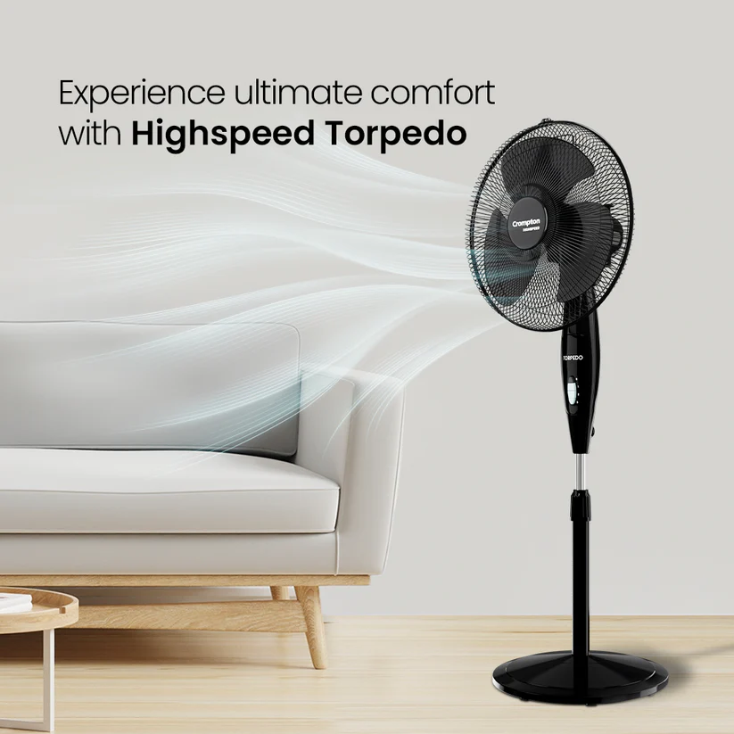 - Enjoy powerful breeze with Crompton HighSpeed Torpedo Pedestal Fans