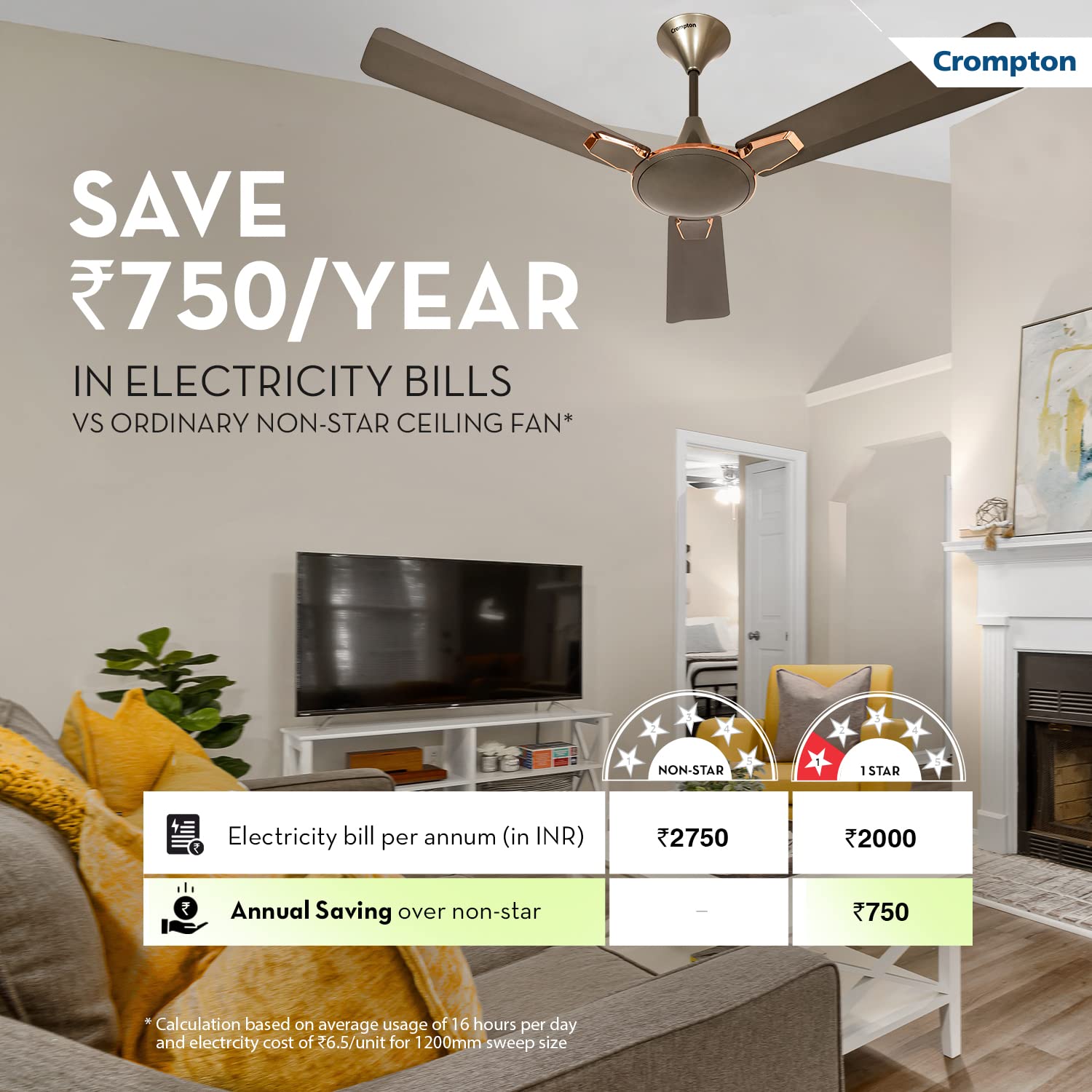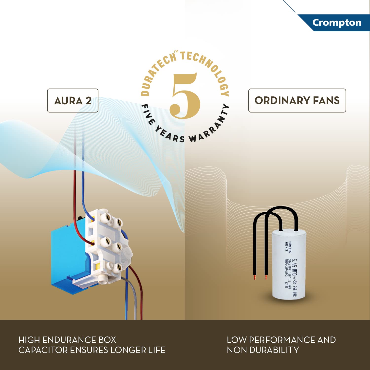 Crompton AURA2 Prime ANTIDUST 1200 mm (48 inch) Ceiling Fan (Irish Coffee) Star Rated Energy efficient Fans, 5 Years Warranty