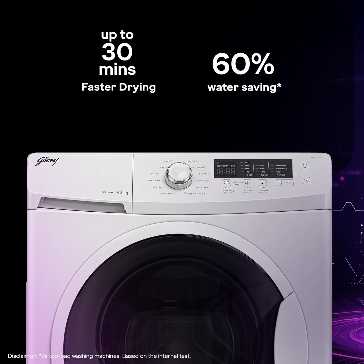 Godrej 6.5 Kg 5 Star AI Tech Fully-Automatic Front Load Washing Machine (WFEON CRS 6510 5.0 FKEDM GLWH, Glacial White)
