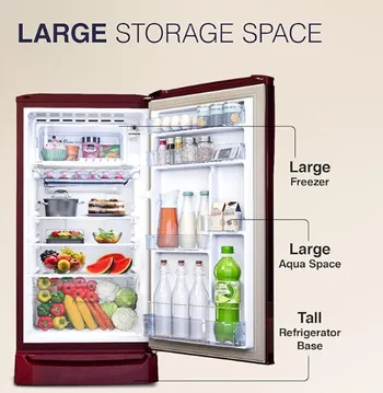 Godrej Single Door Refrigerator 183 Litres 1 Star RD ERIOPLS 205A THF LF WN Leaf Wine | Turbo cooling technology , Toughened Glass Shelf , Largest Freezer