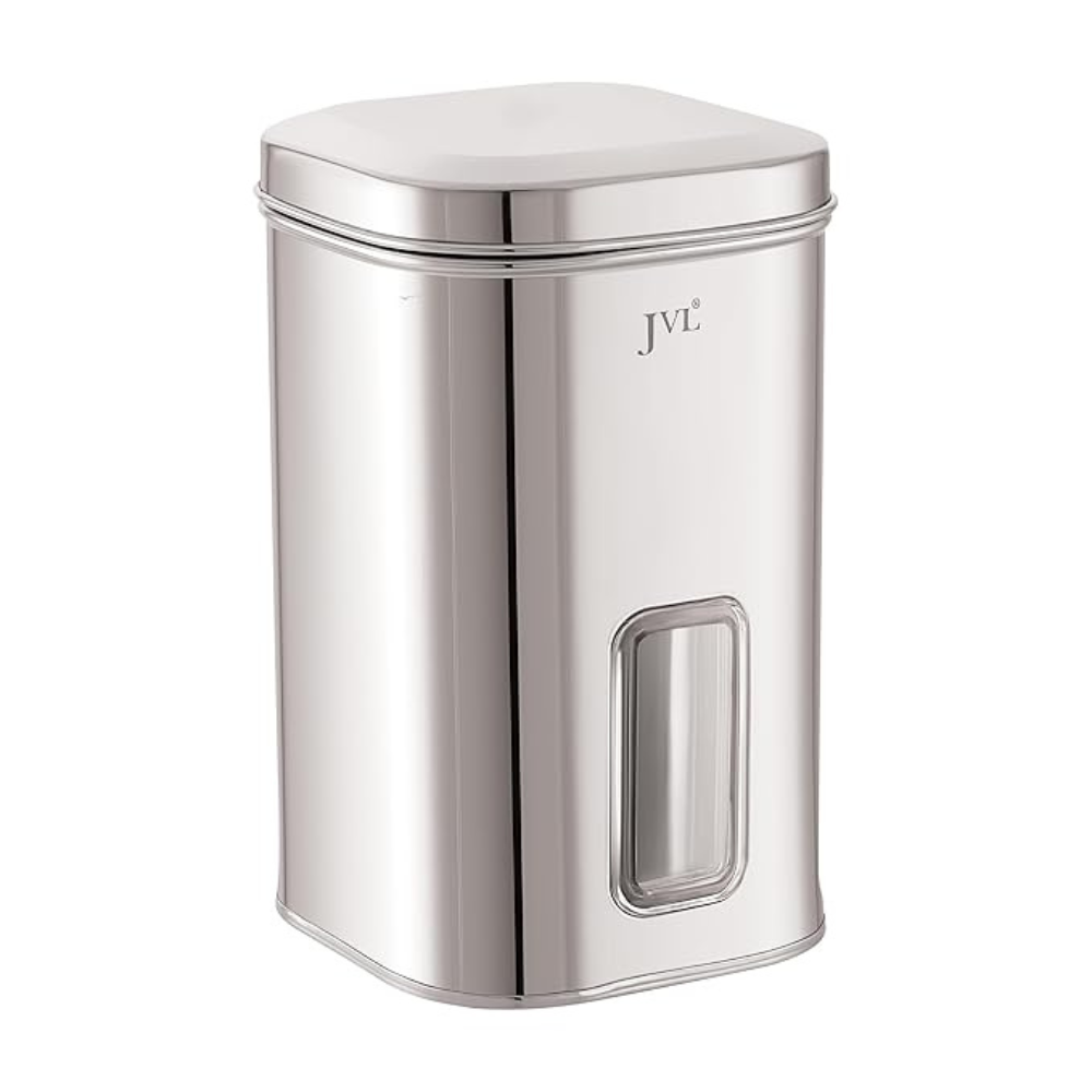 JVL Flossy Window Canister With See Through Window, Airtight Lid, Ideal For Grains, Snacks, Spices & Dry Fruits