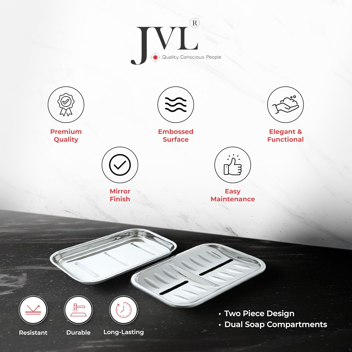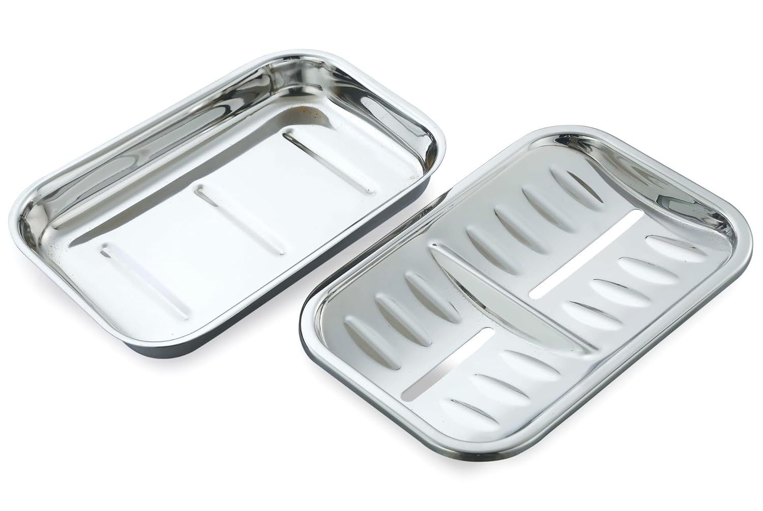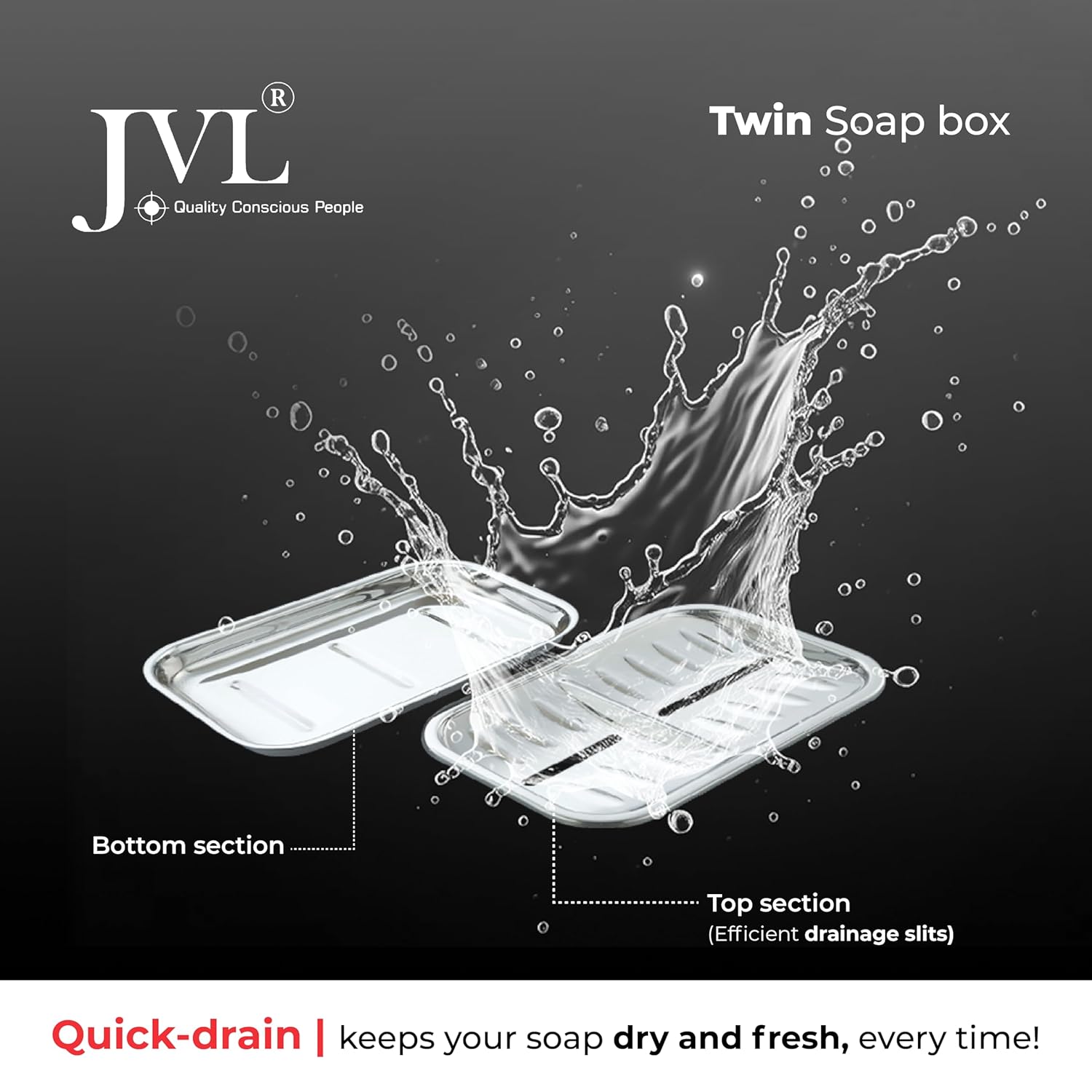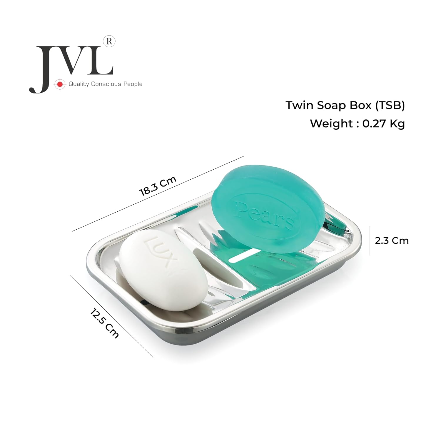JVL Twin Stainless Steel Soap Holder with Quick Drain, Mirror Finish (Twin Soap Box)