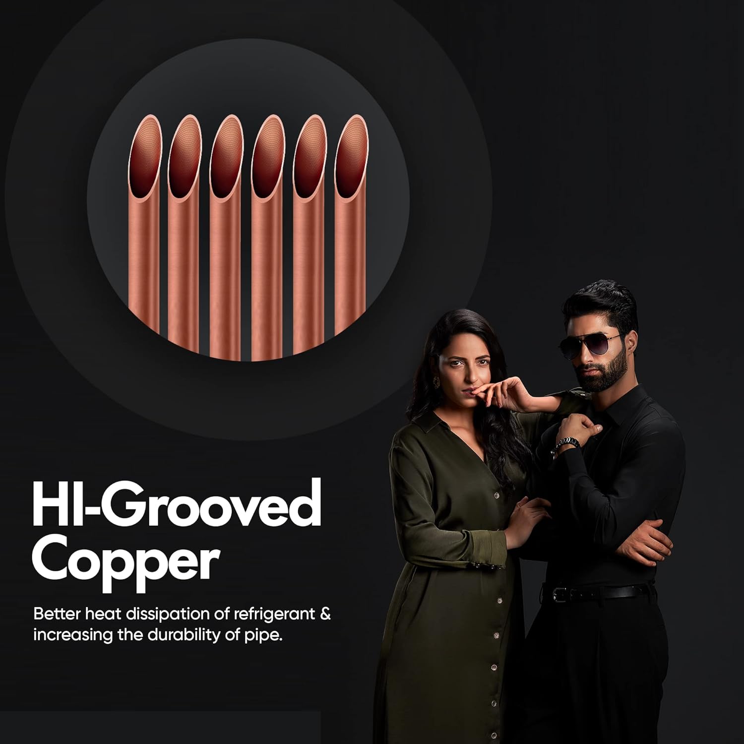 Hi-Grooved Copper pipes serve dual benefits of better heat dissipation of refrigerant & increasing the durability of pipes.