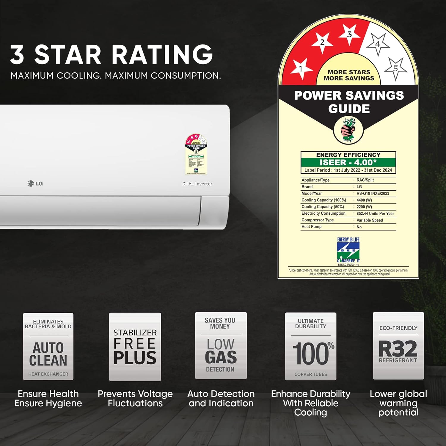 LG’s enhanced stabilizer-free* plus operation prevents voltage fluctuations without compromising on safety, savings, and comfort.