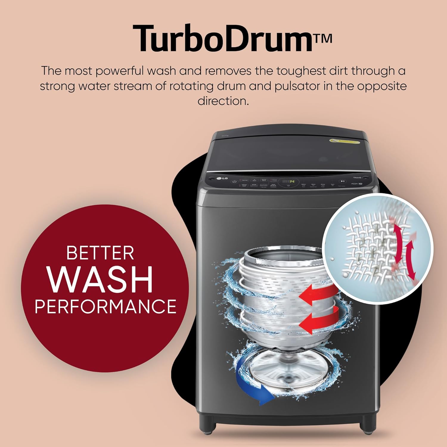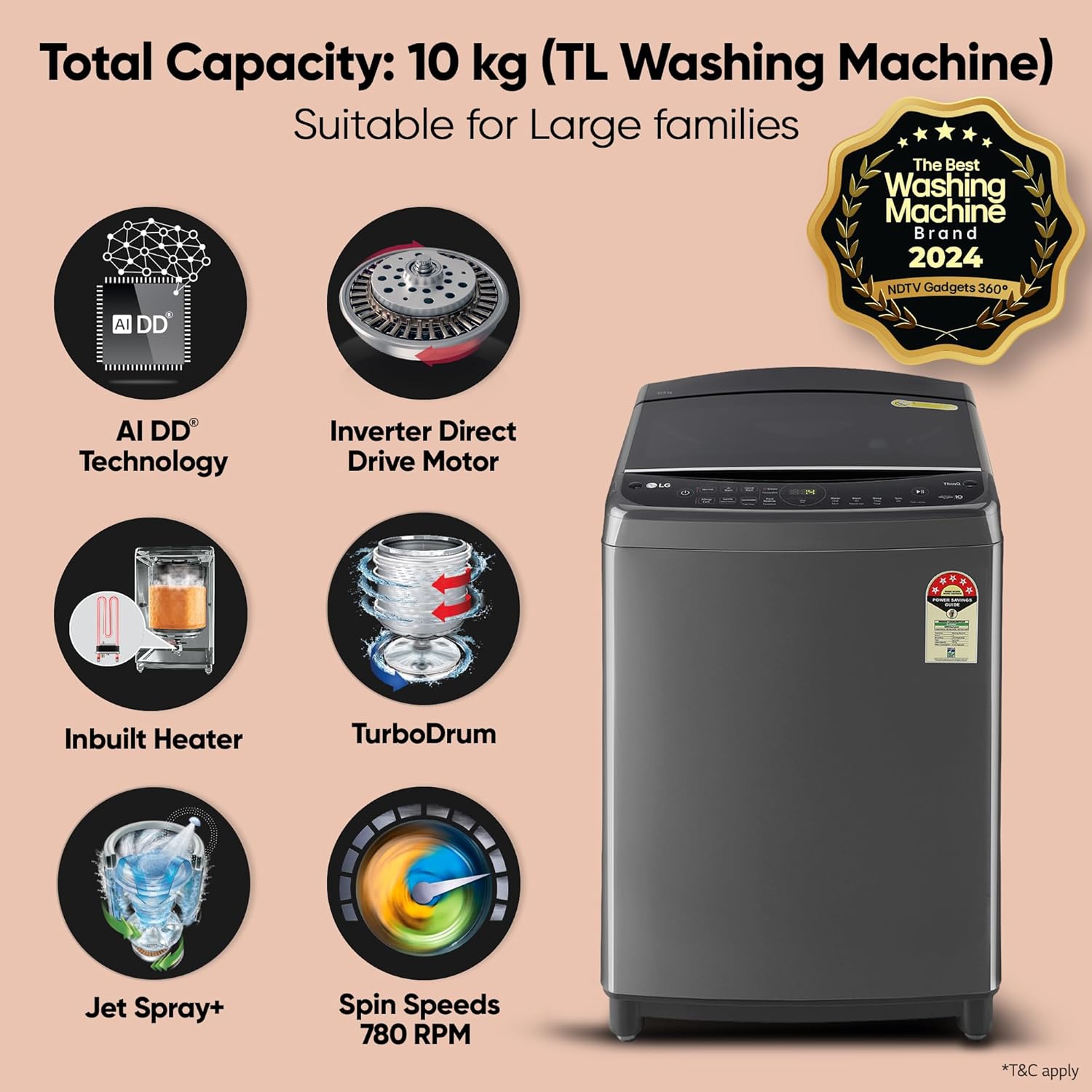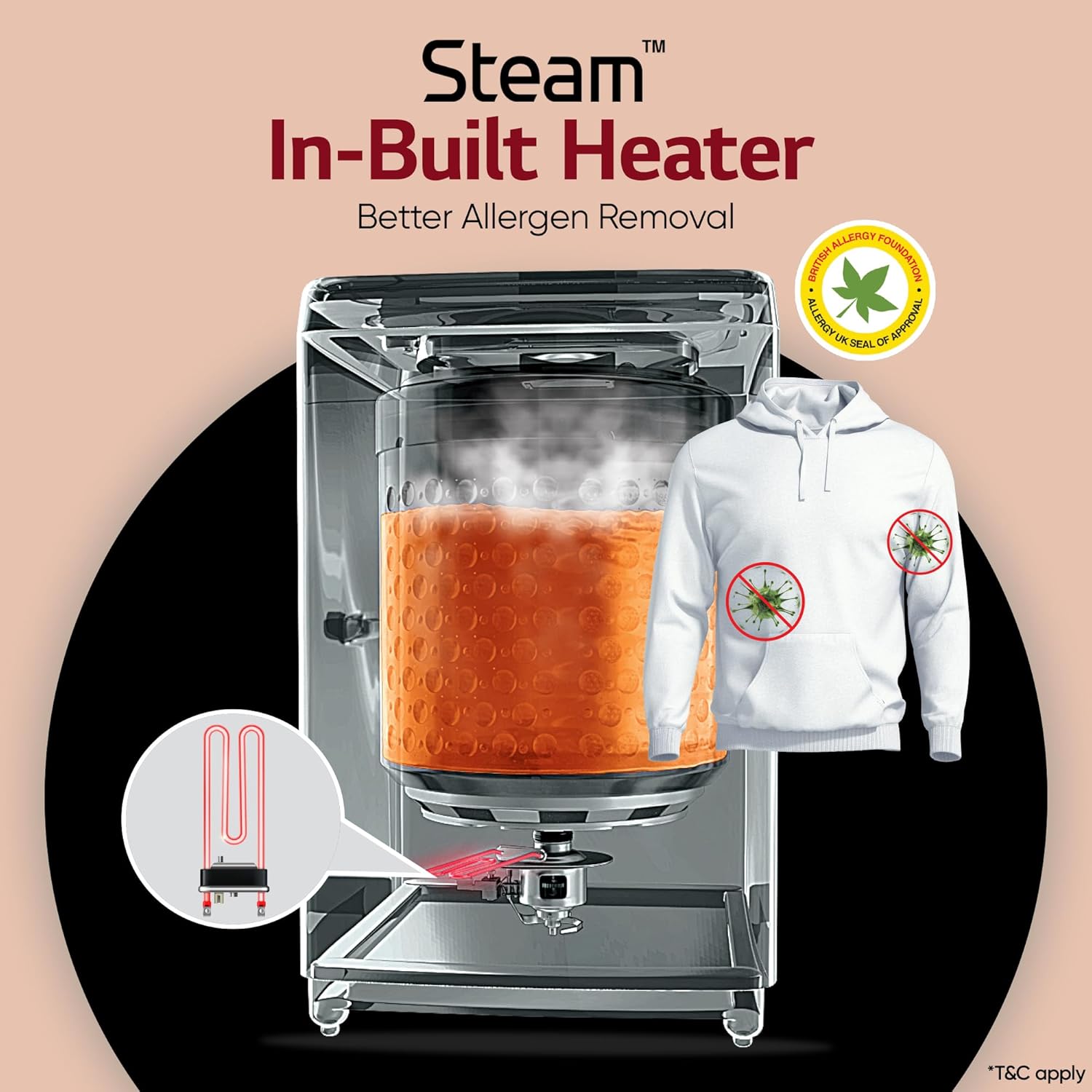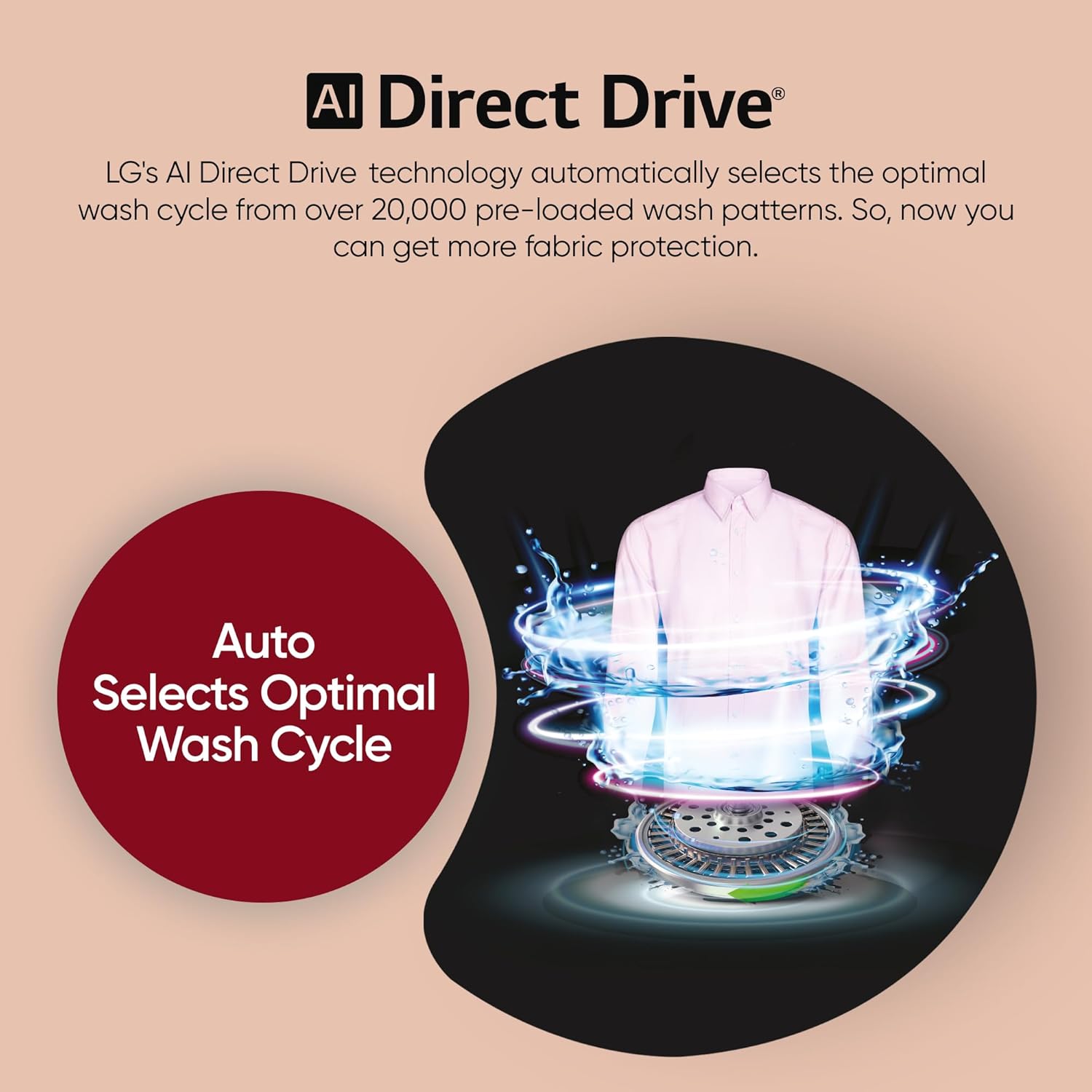 - Key Performance Features: AI -Intelligent Care with Optimized washing and More Fabric Protection | With In-Built Heater Steam away Stains and Allergens | 6 Motion Direct Drive – Better Wash Performance, Cleaner Cloths | Inverter Direct drive Motor – Less Vibration, Less Noise, More Durability | LG ThinQ (Wi-Fi) – Operate Laundry Remotely | Reload Function | Intensive stain removal | Silent operation | Bigger Capacity with Smooth Operation