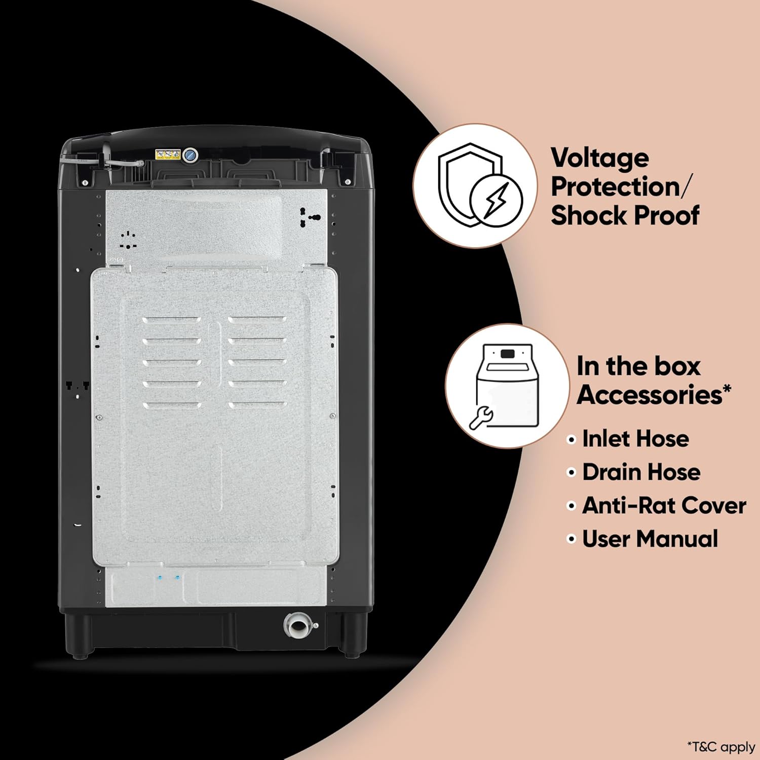 - Additional Features: Jetspray+ – removes dirt and excessive detergent without any manual scrubbing or rubbing effort| Turbowash – uses stronger wash motions along with increased water temperatures to enhance and speed up the wash cycle without sacrificing wash performance | Turbodrum – for better wash performance | Auto Restart with Memory Backup | Voltage Protection/Shock Proof, Anti-Rat Cover, Anti rust proof body, Smart Diagnosis