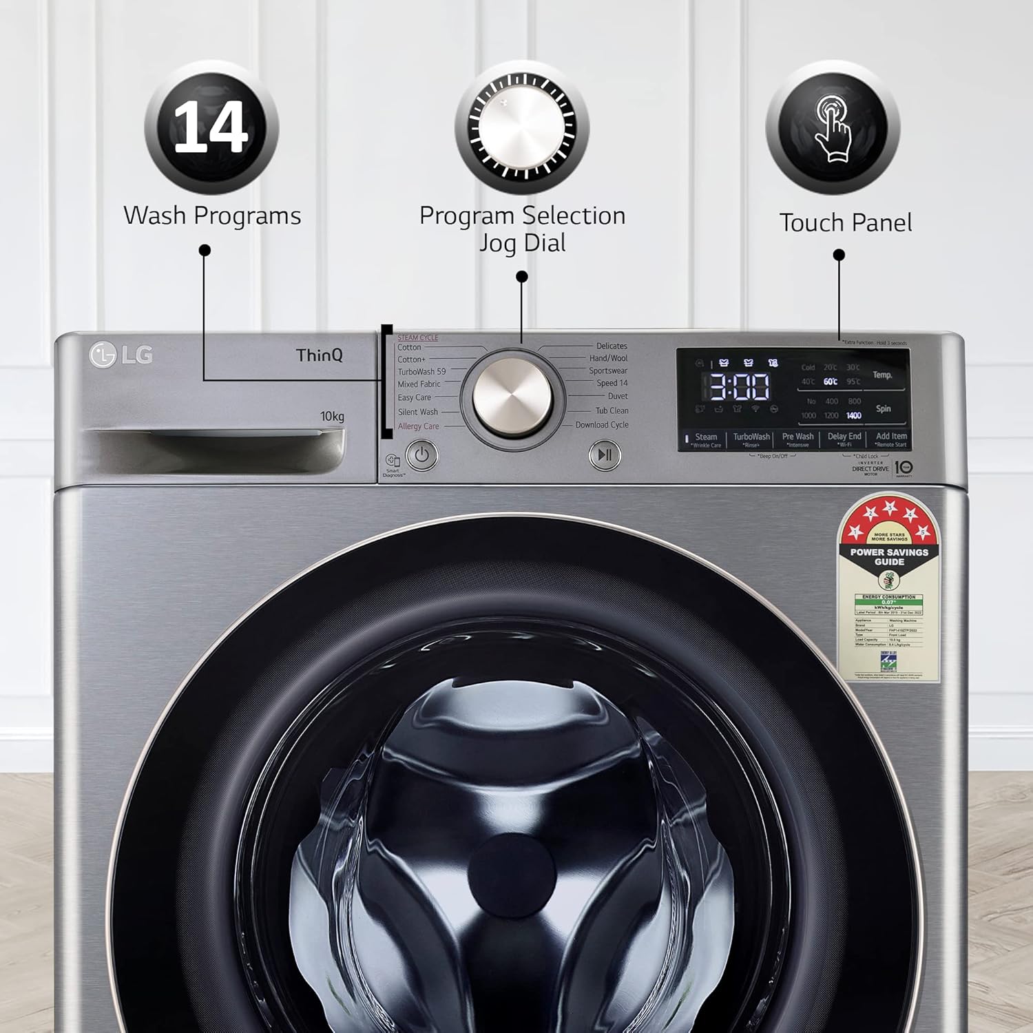 LG 10 Kg 5 Star AI Direct Drive Wi-Fi Inverter Fully Automatic Front-Loading Washing Machine (FHP1410Z7P, Turbowash & Steam for Hygiene Wash, Platinum)