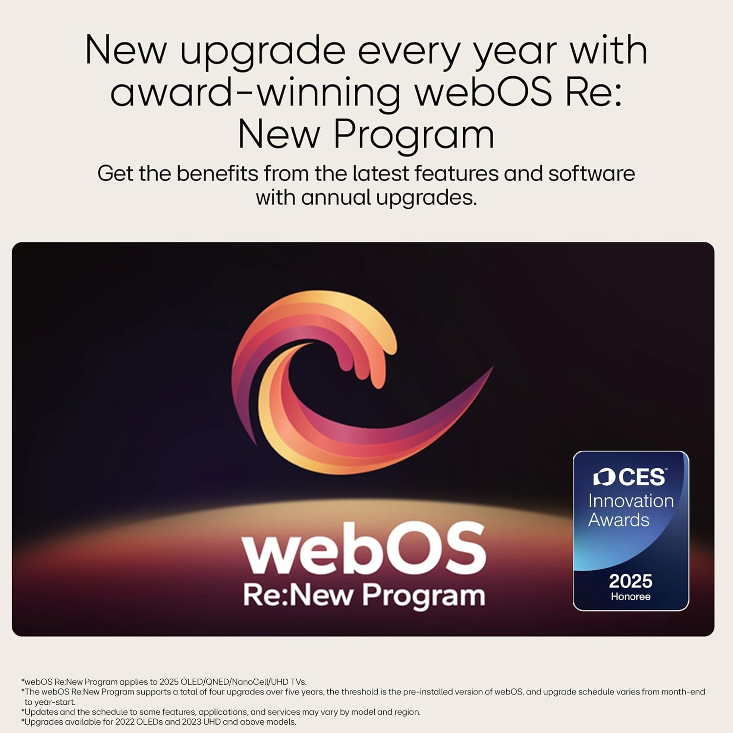 The latest features and software with annual upgrades for 5 years. A CES Innovation Awardee for the cybersecurity category, feel safe knowing webOS keeps your privacy and data secure.