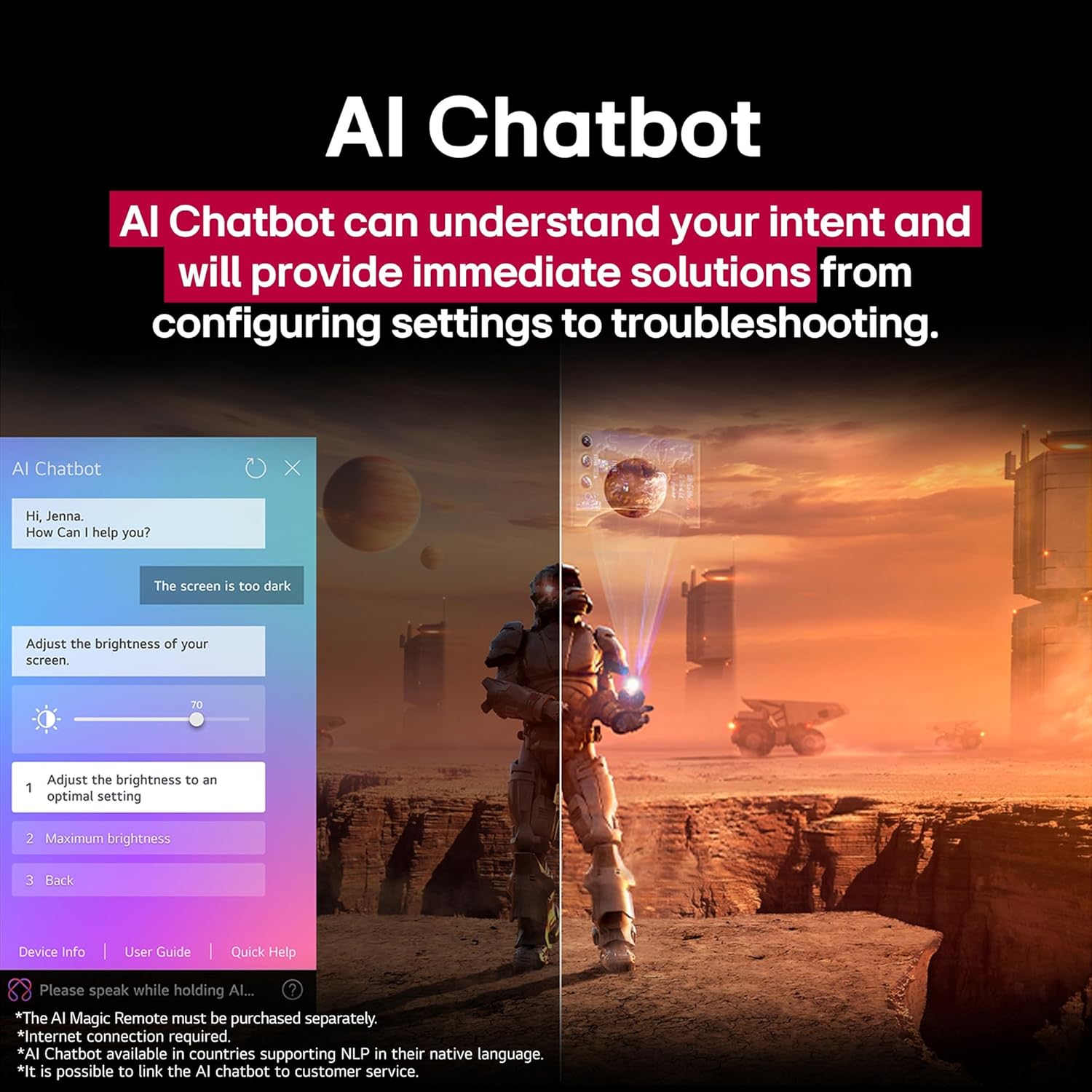 Interact with the AI Chatbot through your AI Magic Remote and address all concerns from configuring settings to troubleshooting. AI can understand user intent and will provide immediate solutions.