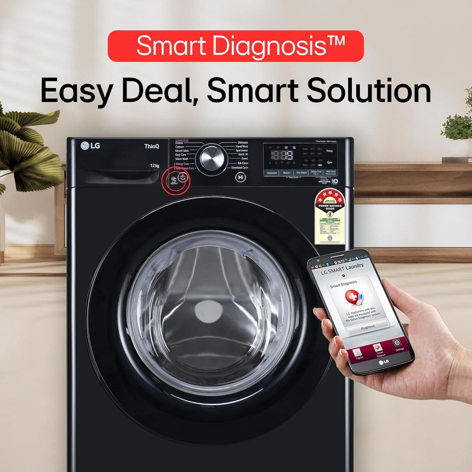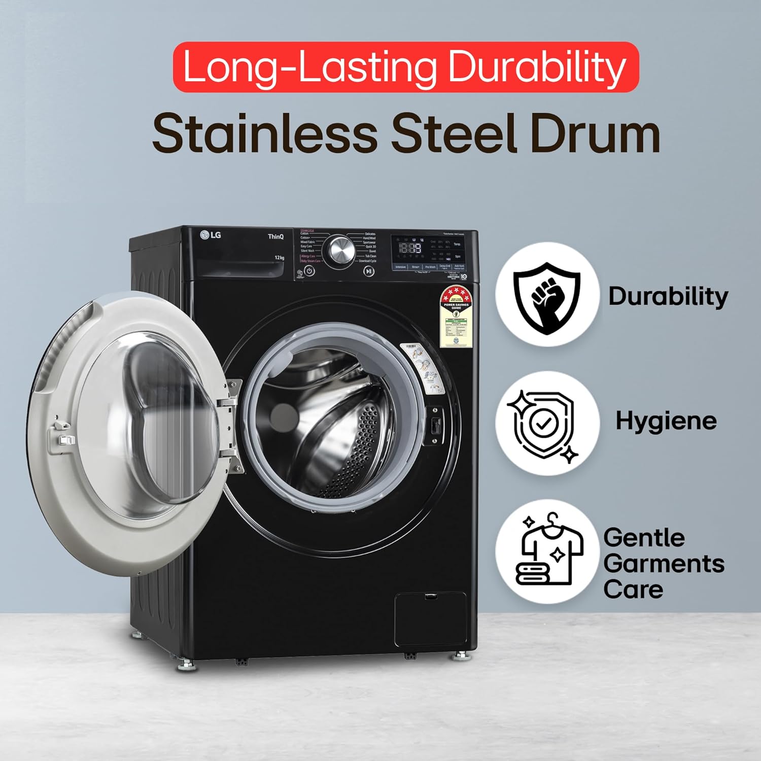- Capacity 12 kg: Suitable for large families | the maximum load per cycle depends on the washing program