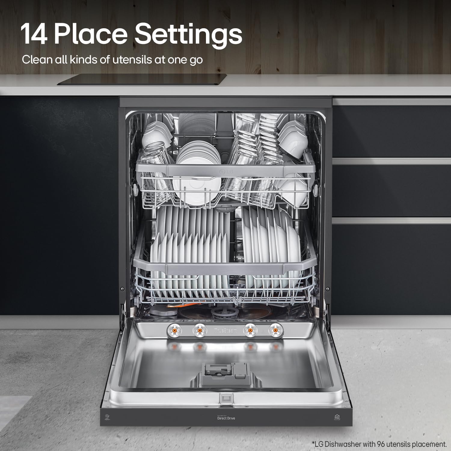 LG 14 Place Settings Inverter Direct Drive, Wi-Fi Free Standing Dishwasher (DFB424FP, Silver, Silent Operation, Tough Stain Removal, Adjustable racks & TrueSteam)