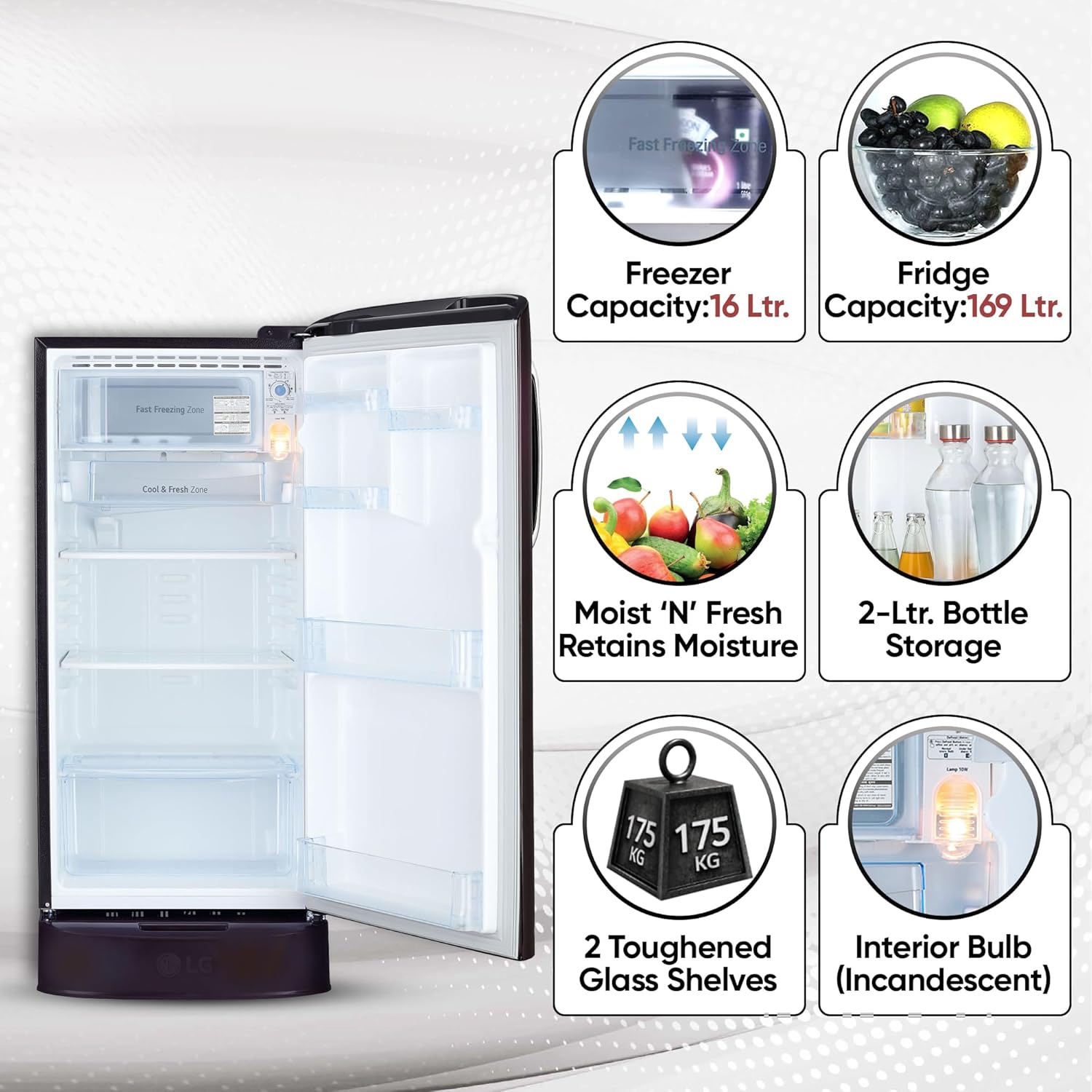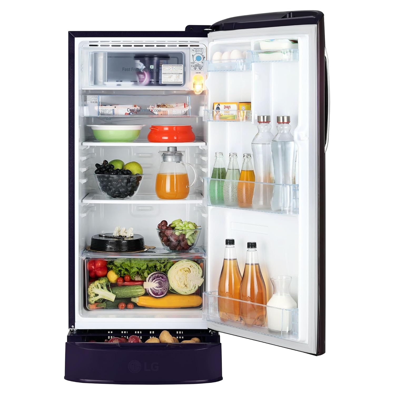 LG 185 L, 5 Star, Smart Inverter, Direct Cool Single Door Refrigerator (GL-D201APIU, Purple ILAN, Moist N Fresh, Auto Smart Connect & Base Stand Drawer)