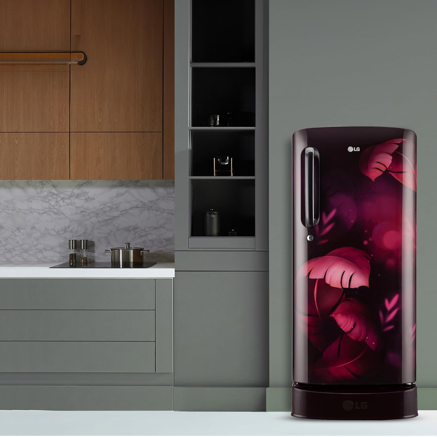 LG 224L Single Door Refrigerator, Smart Inverter Compressor with Base Stand Drawer, Scarlet Aurora, 5 Star GL-D241ASAU