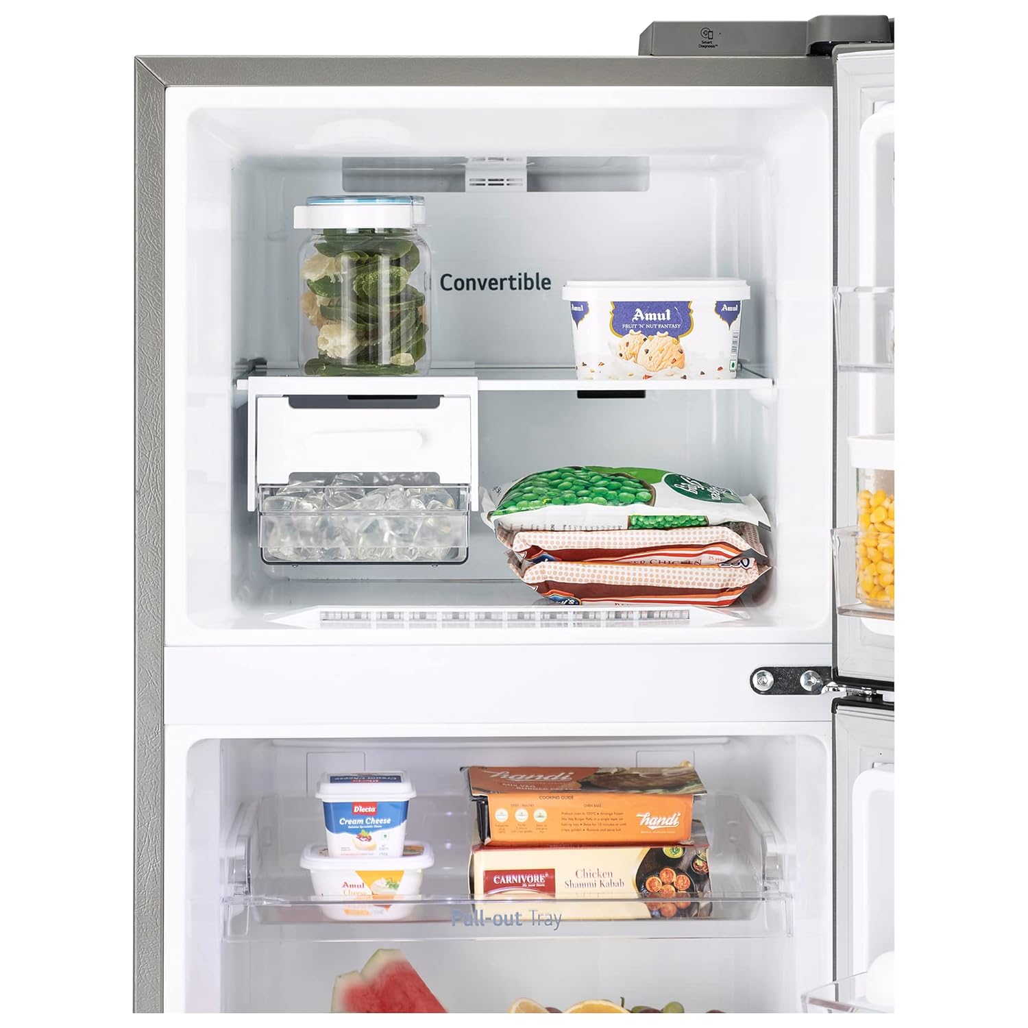 Auto Smart Connect™ is a technology that helps connect your refrigerator to home inverter. Once the refrigerator is connected to the home inverter, every time the power goes off it automatically takes inverter power to run the refrigerator without any manual supervision. Consumes power less than 2 CFL~ bulbs during power cut.