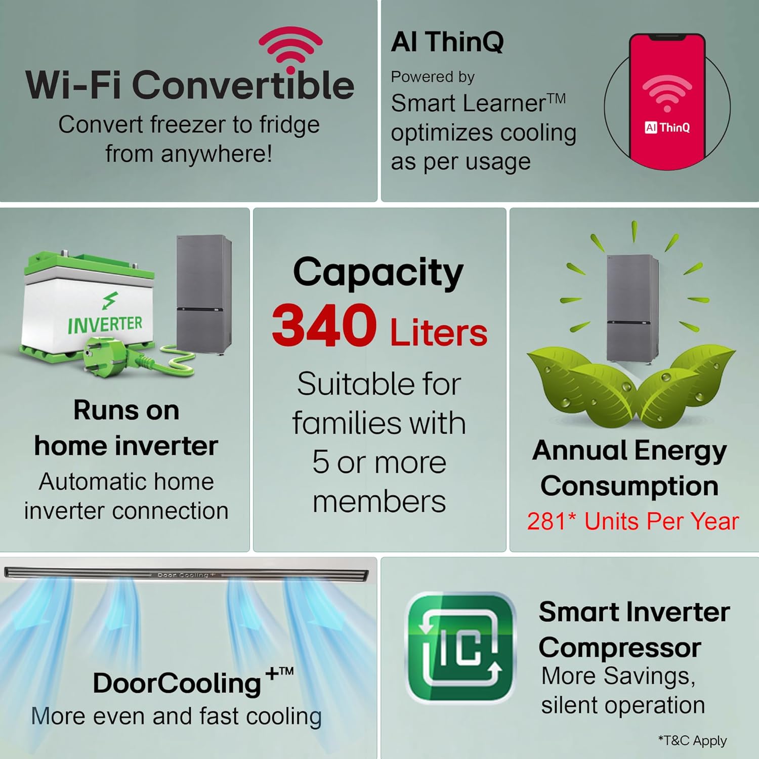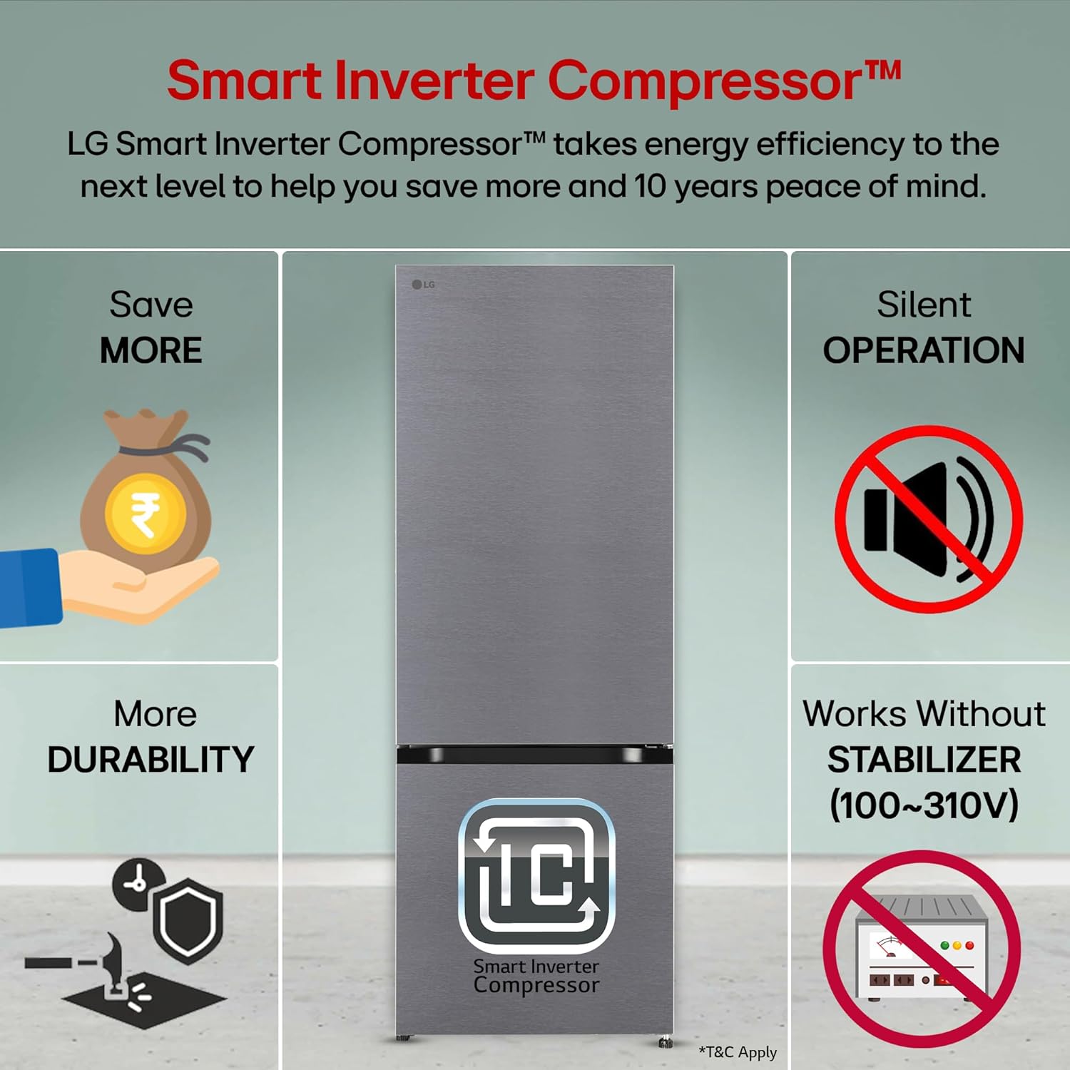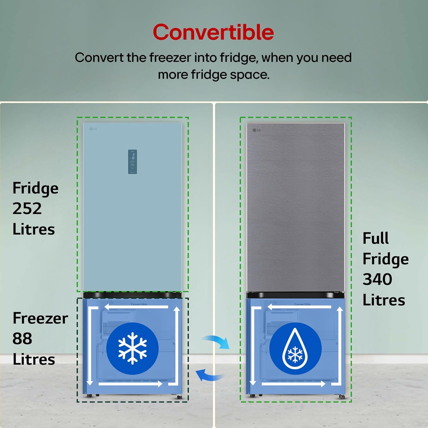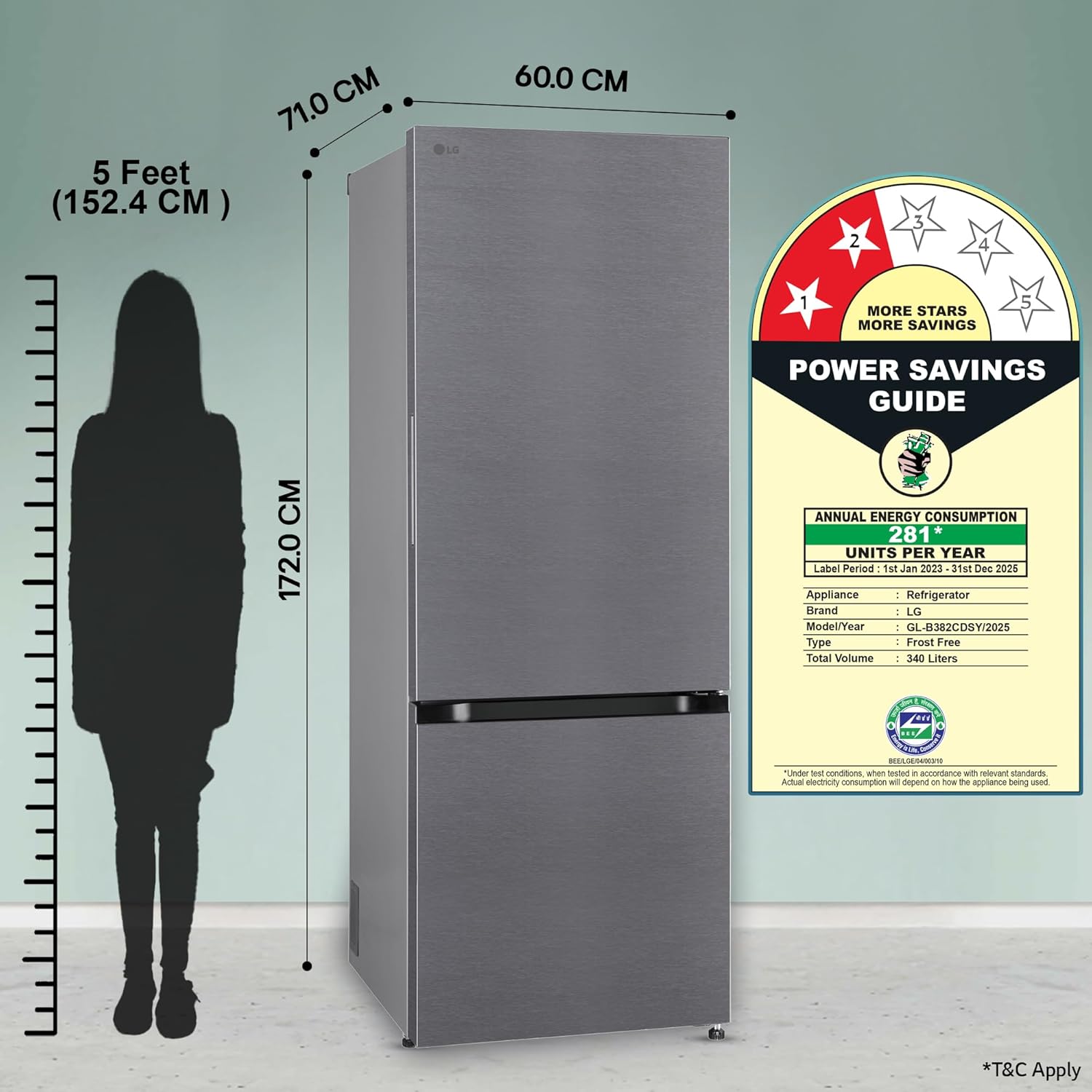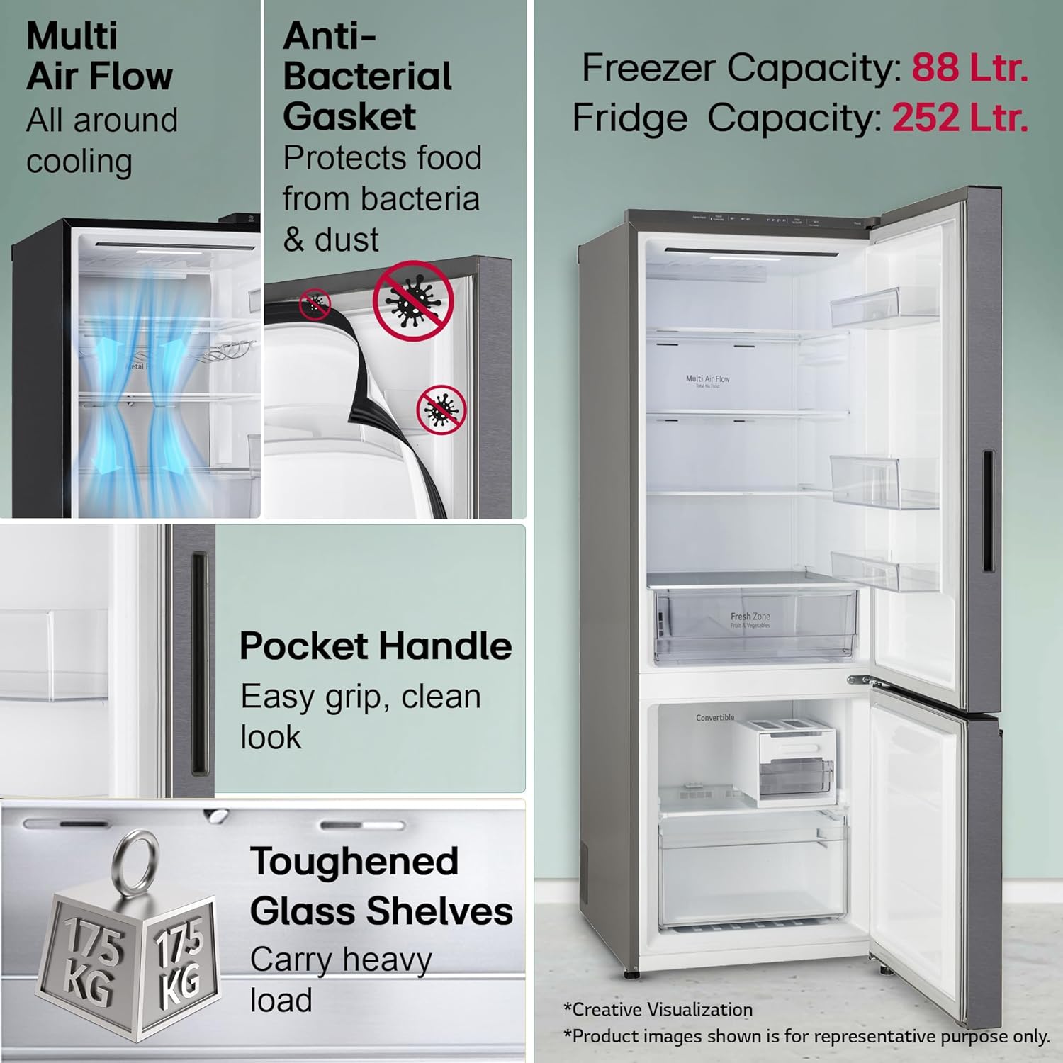 - The LG Frost-Free Bottom Freezer Refrigerator: greater than 300 L, offers an ergonomic design, placing the refrigerator at eye level to facilitate easy access to everyday items, so it is convenient and easy to use