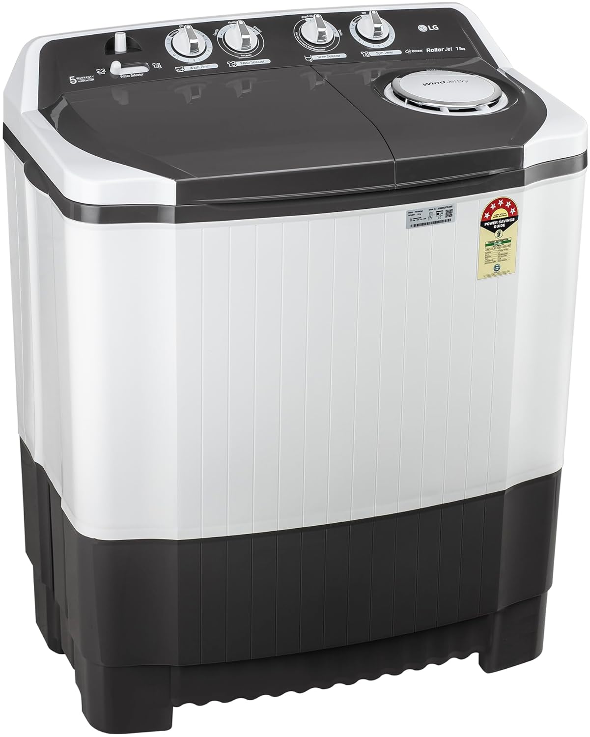 LG 7.5 kg 5 Star Wind jet dry Semi-Automatic Top Load Washing Machine (P7510RGAZ, Dark Gray, Roller Jet Pulsator)