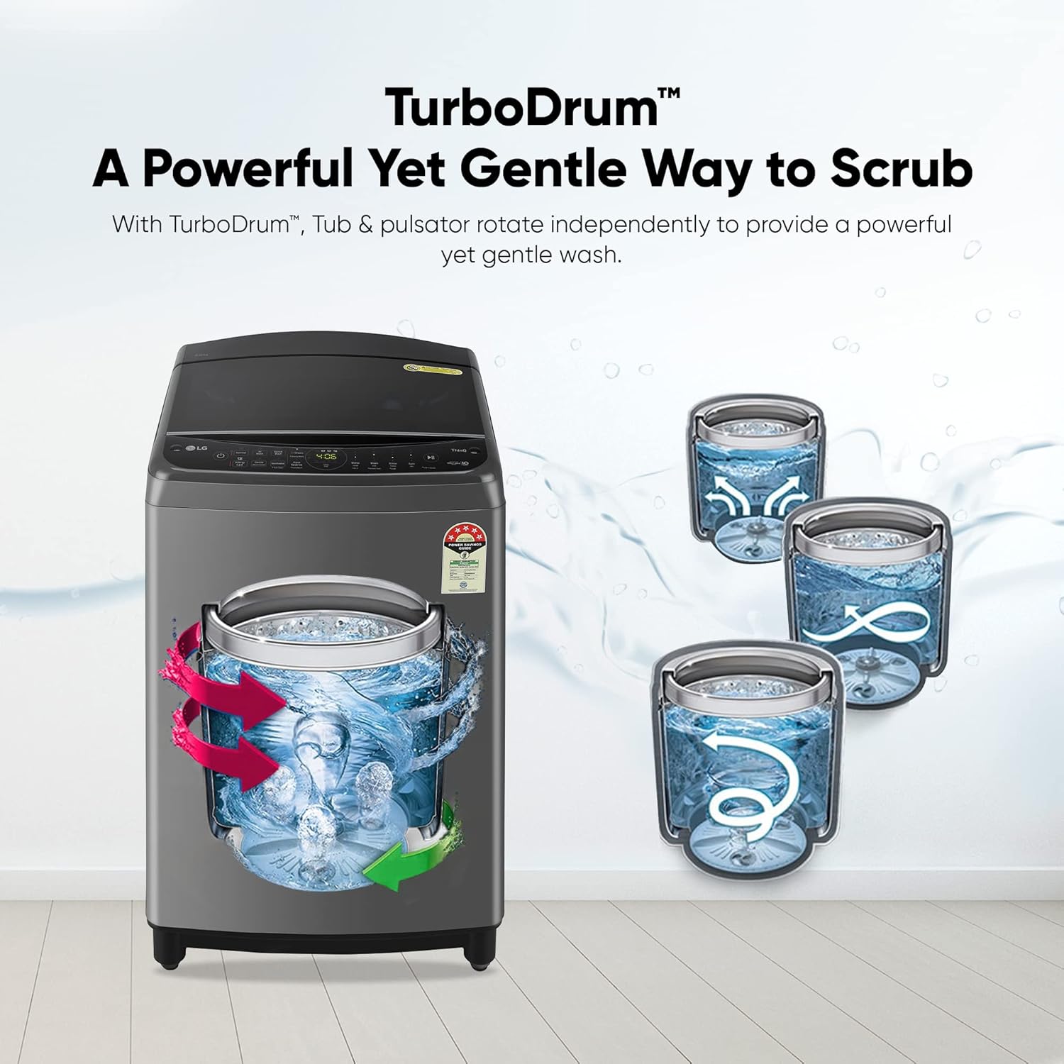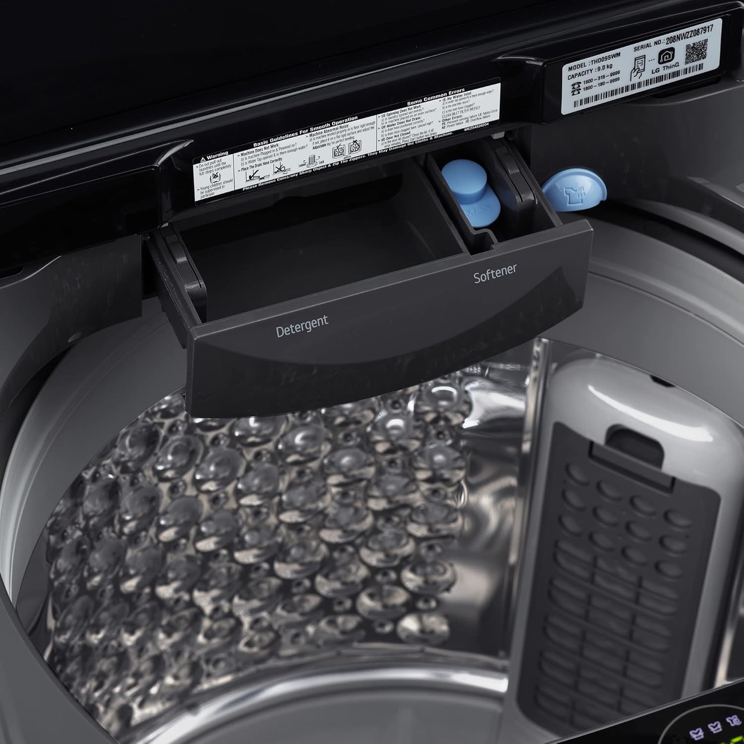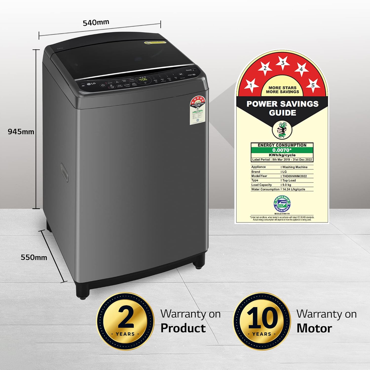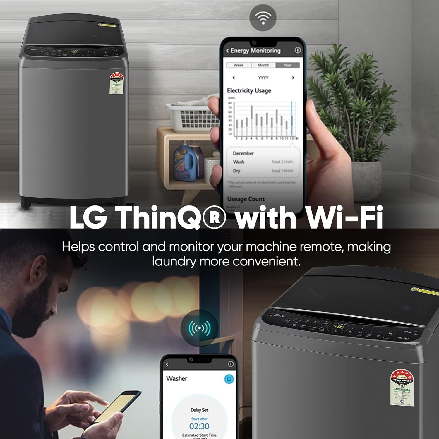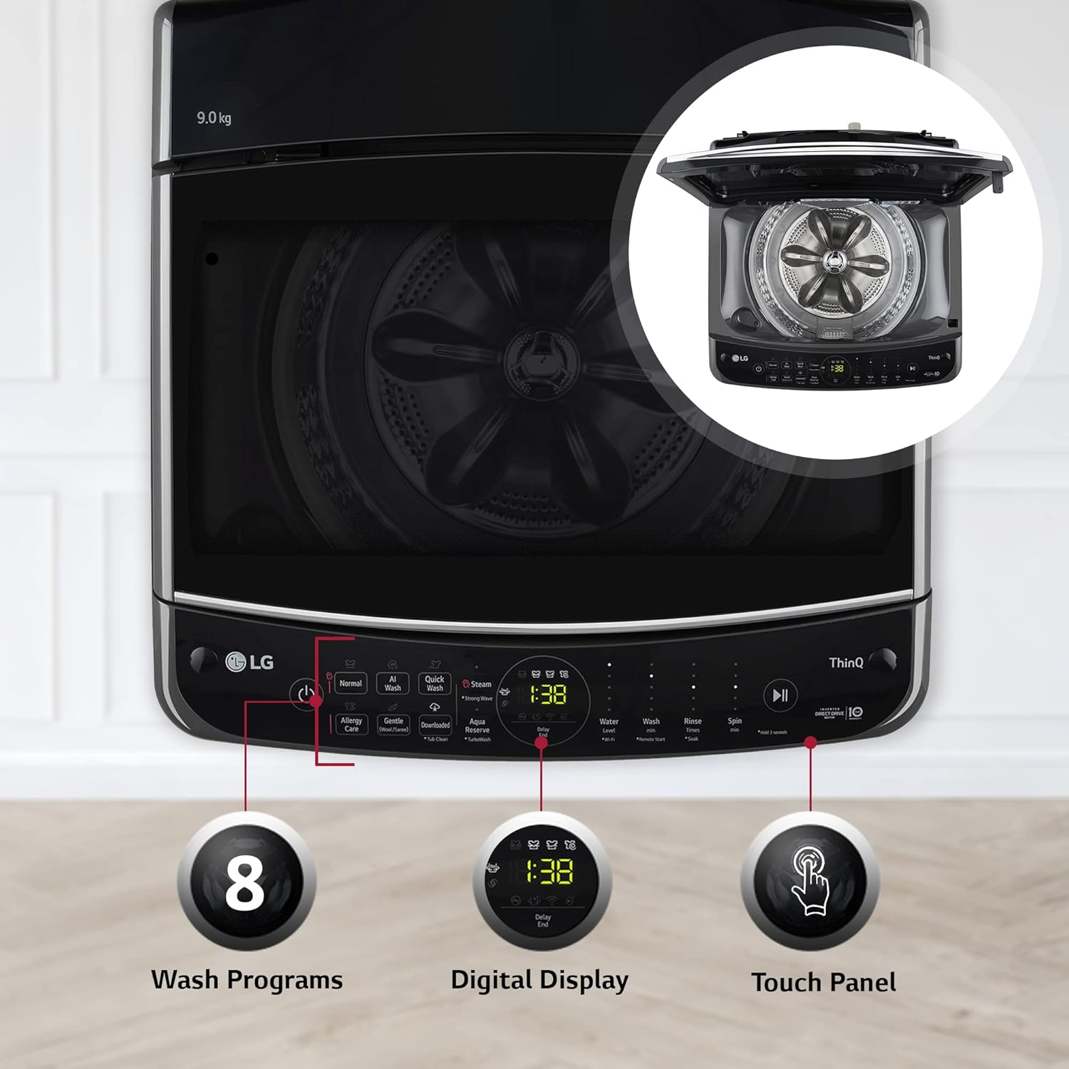 LG 9 Kg 5 Star Inverter Wi-Fi Fully-Automatic Top Loading Washing Machine Appliance THD09NWM, Middle Black, AIDD Technology & TurboWash