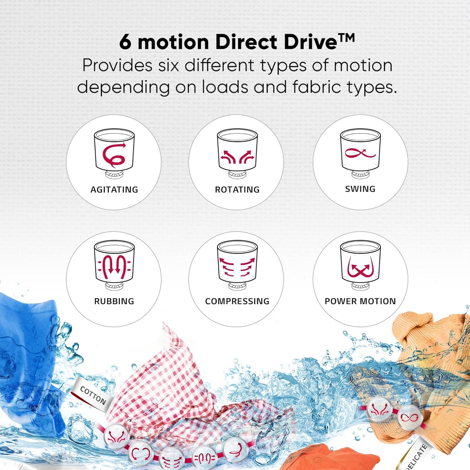 - Key Features: AI -Intelligent Care with Optimized washing and More Fabric Protection, Outstanding Performance with 6 Motion Direct Drive, TurboDrum for Powerful Wash, Turbowash- Fast Washing with Best Performance, LG ThinQ with Wi-Fi