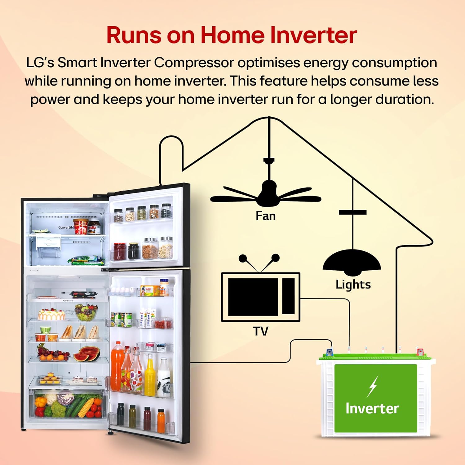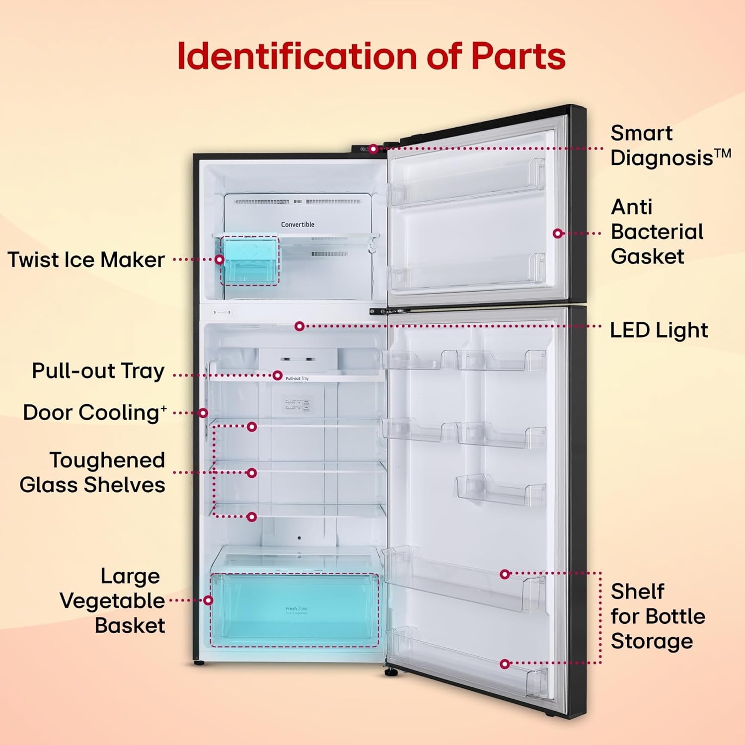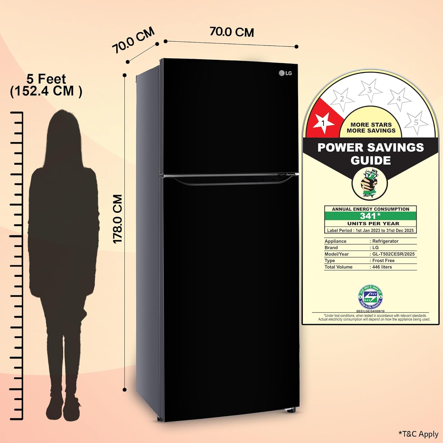 LG Smart Choice, 446 L, 1 Star, Convertible, Door Cooling+, Smart Inverter Compressor, Frost Free Double Door Refrigerator (GL-T502CESR, Ebony Sheen, Express Freeze & Multi Air Flow)