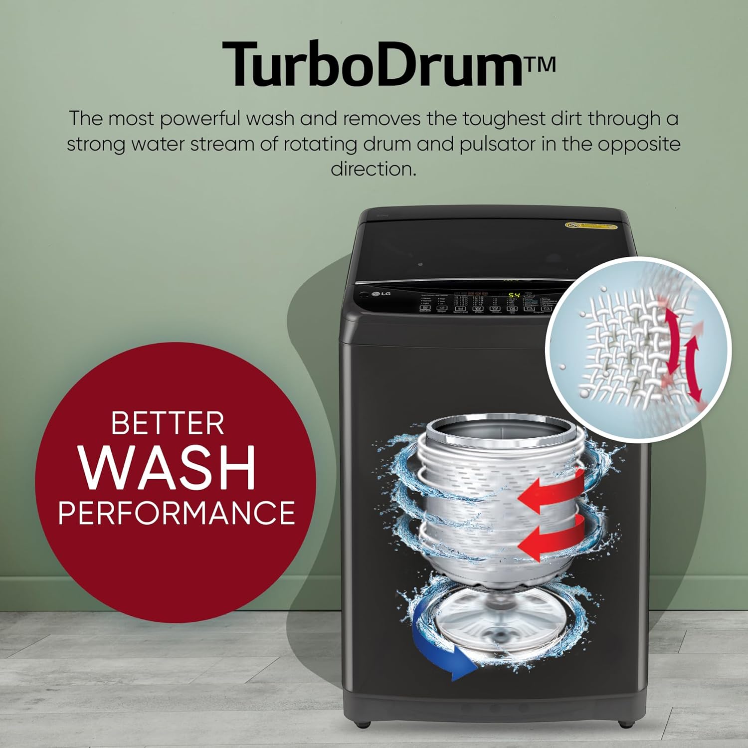 LG Smart Choice, 9 Kg, 5 Star, Smart Inverter Technology, Turbodrum, Fully Automatic Top Load Washing Machine (T90AJMB1Z, Jetspray+, Turbowash, Auto Tub Clean after every wash cycle, Middle Black)