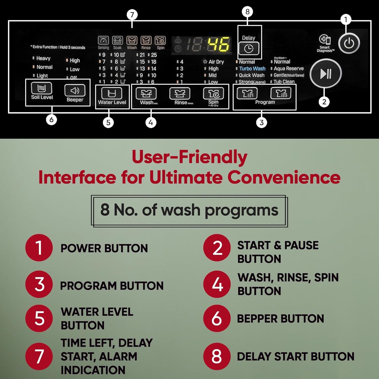 - LG Fully-automatic top load washing machine with Smart Inverter Motor and Smart wash technology: Affordable with great wash quality, Easy to use; has both washing and drying functions