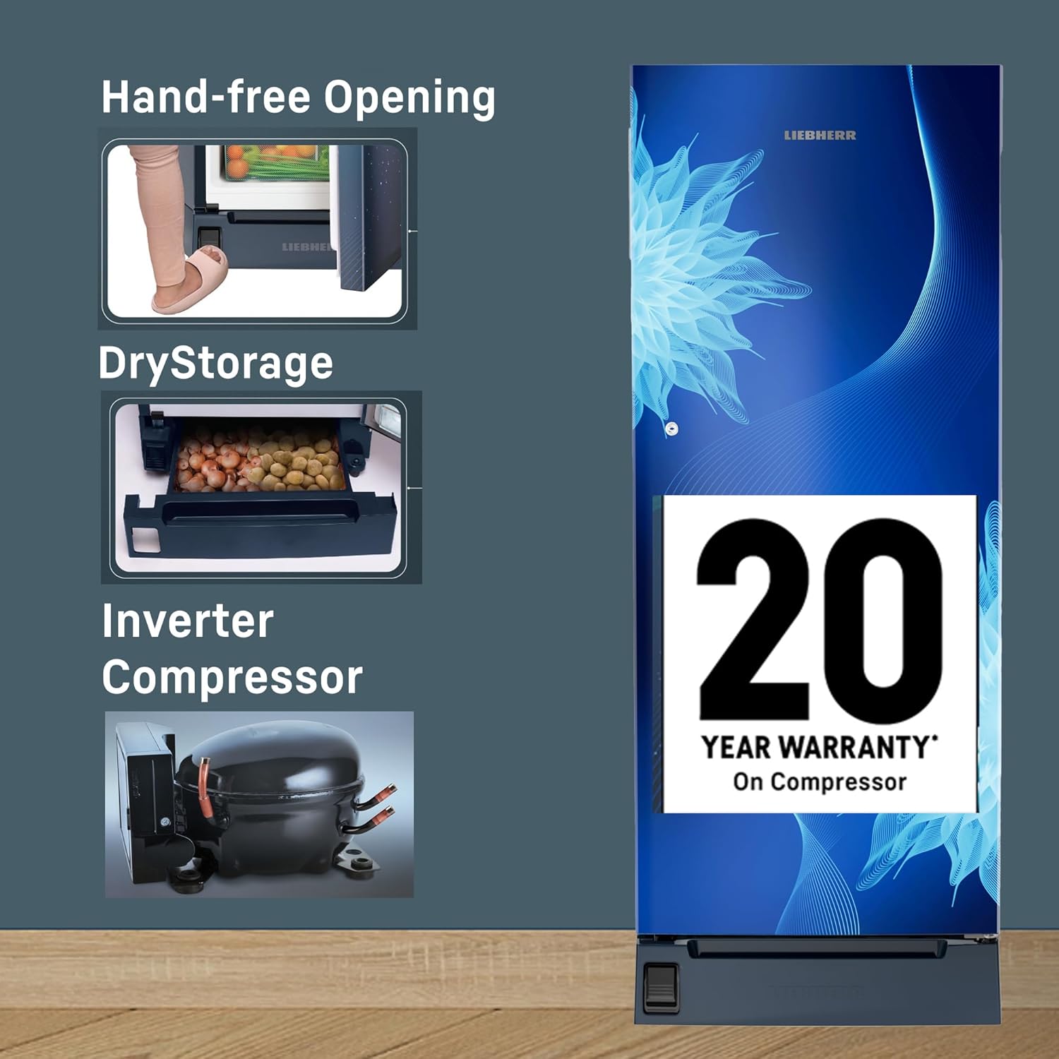 - Inverter Compressor provides greater energy efficiency, less noise and long-lasting performance & help reduce power consumption, backed up by 20 year warranty