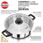 Hawkins 2 Litre Cook n Serve Casserole, Stainless Steel Saucepan with Glass Lid, Induction Pan, Sauce Pan for Cooking and Serving
